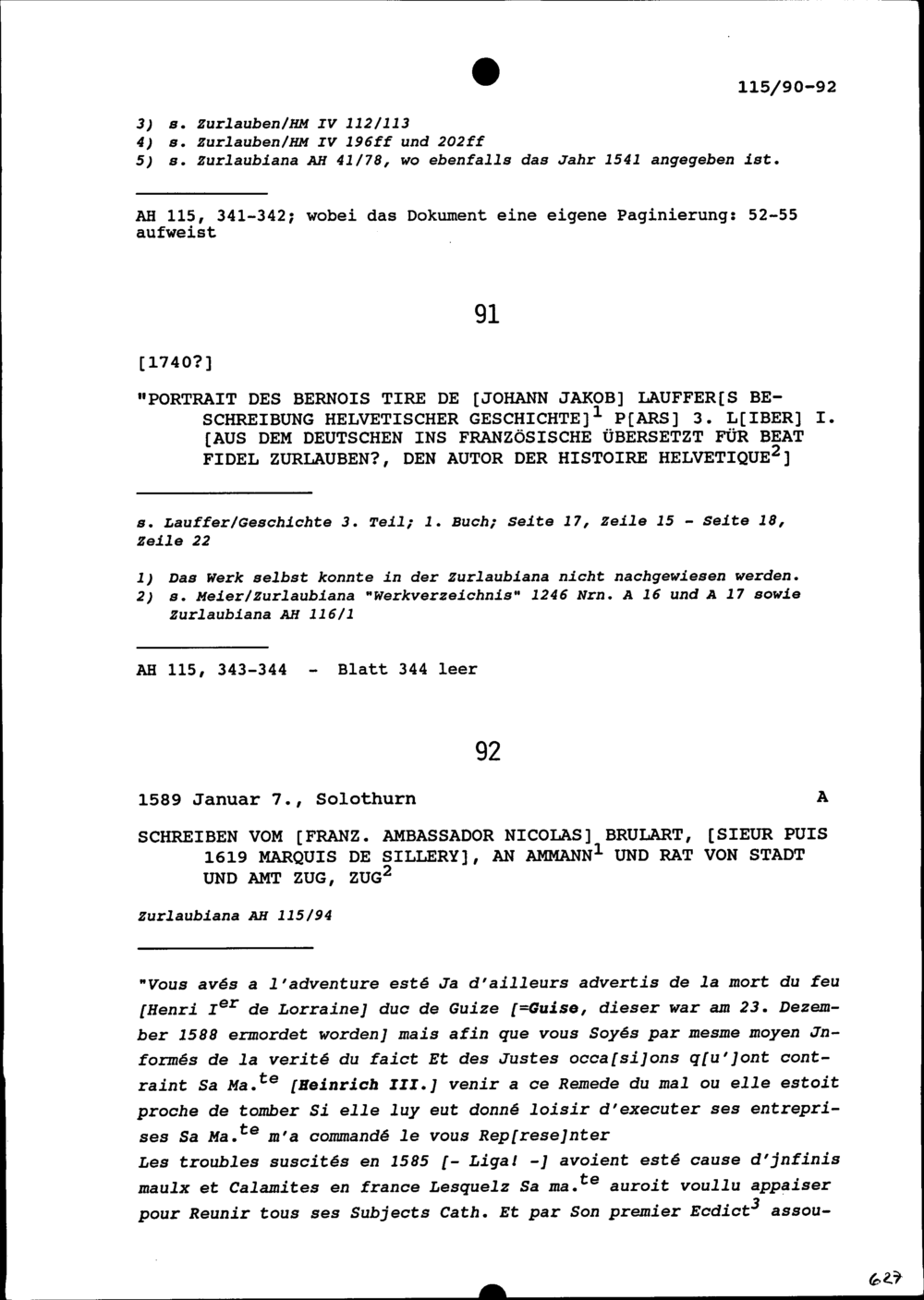 Schreiben von Nicolas Brûlart, Sieur de Sillery, Ambassador von Frankreich, an Ammann...