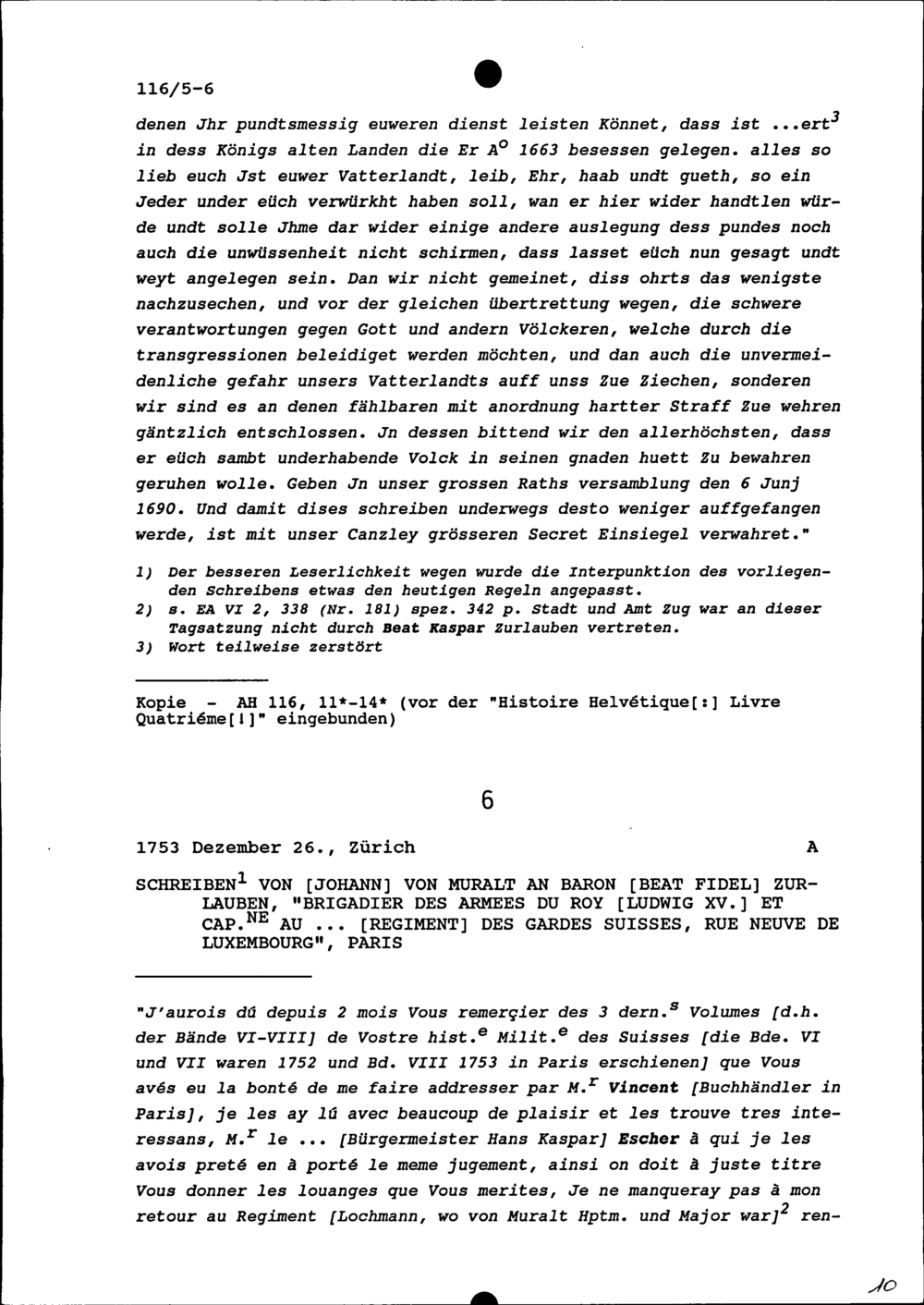 Schreiben des Schultheiss, der Räte und Burger von Bern an ihre Obersten und Hauptleute in Frankreich
