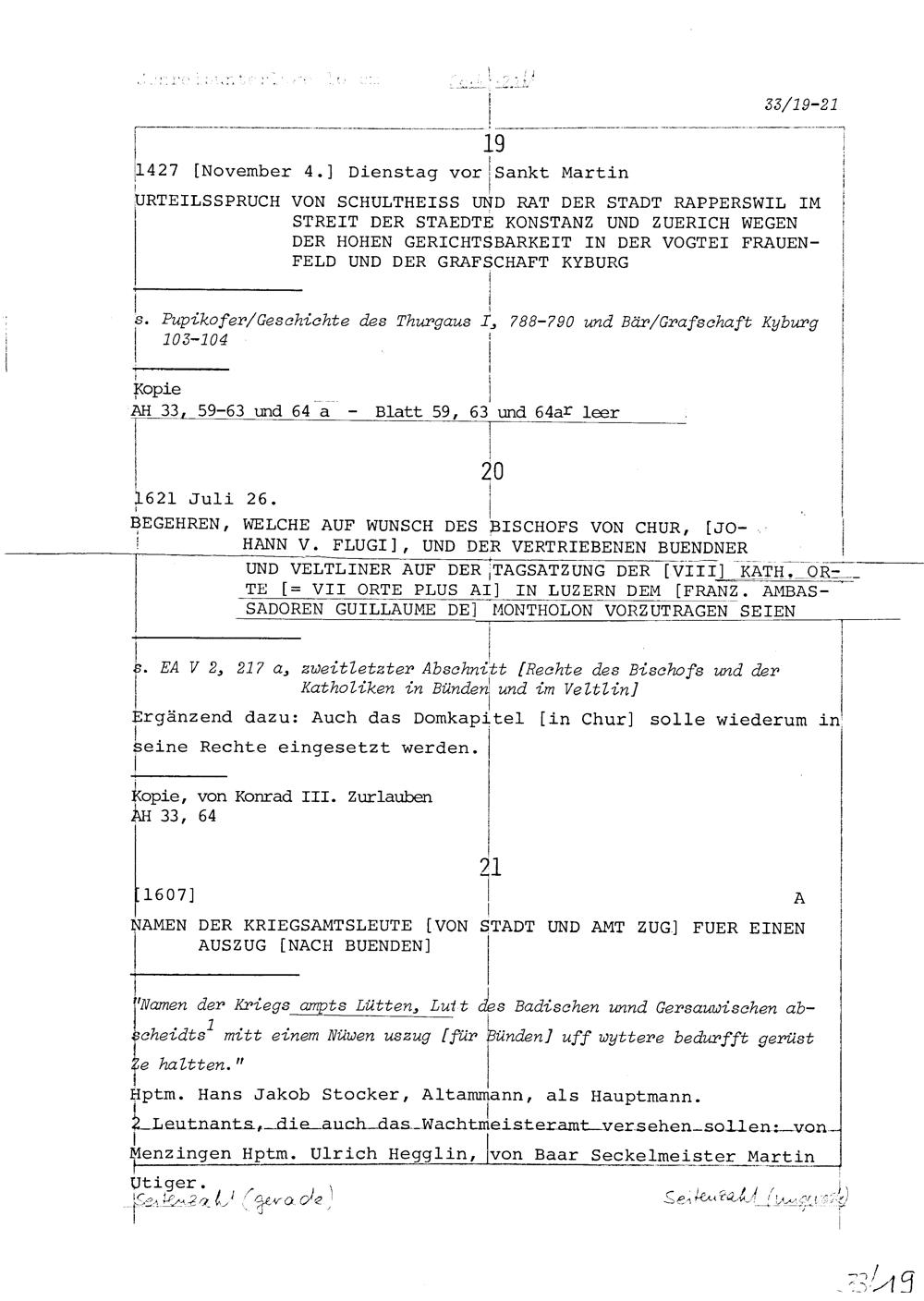 Namen der Kriegsamtsleute von Stadt und Amt Zug für einen Auszug nach Bünden