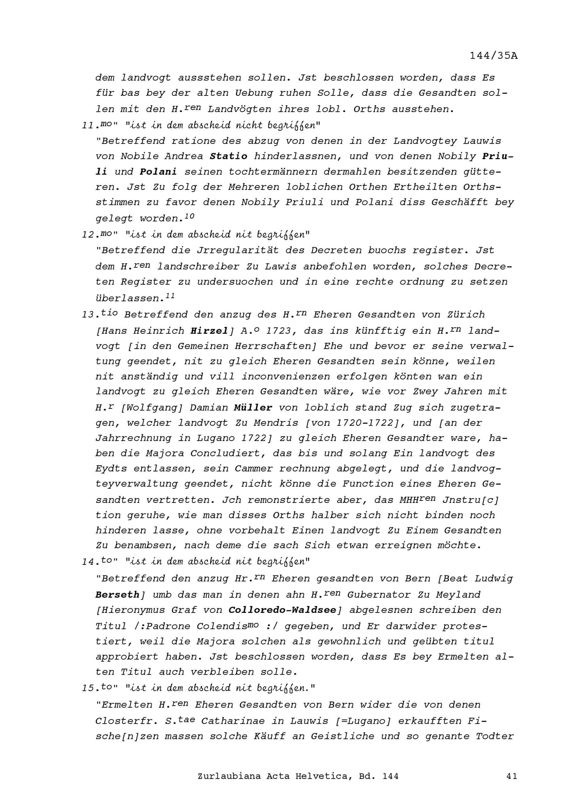 Notiz von Josef Anton Adelrich Schön, Tagsatzungsgesandter von Stadt und Amt Zug, zur Jahrrechnung der in Lugano und Mendrisio regierenden Zwölf Orte in Lugano