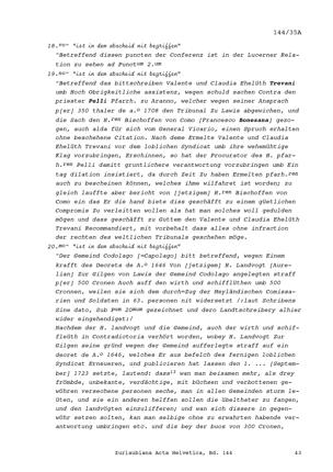 Notiz von Josef Anton Adelrich Schön, Tagsatzungsgesandter von Stadt und Amt Zug, zur Jahrrechnung der in Lugano und Mendrisio regierenden Zwölf Orte in Lugano