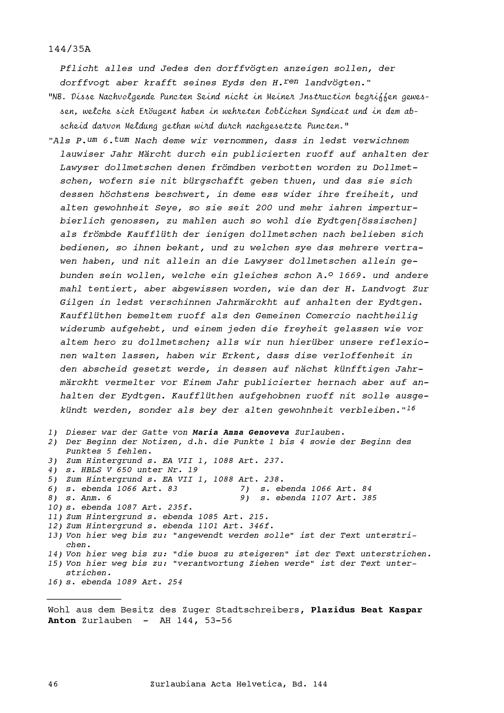 Notiz von Josef Anton Adelrich Schön, Tagsatzungsgesandter von Stadt und Amt Zug,...