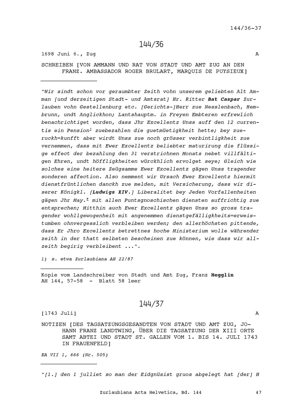 Acta Helvetica, Band 144