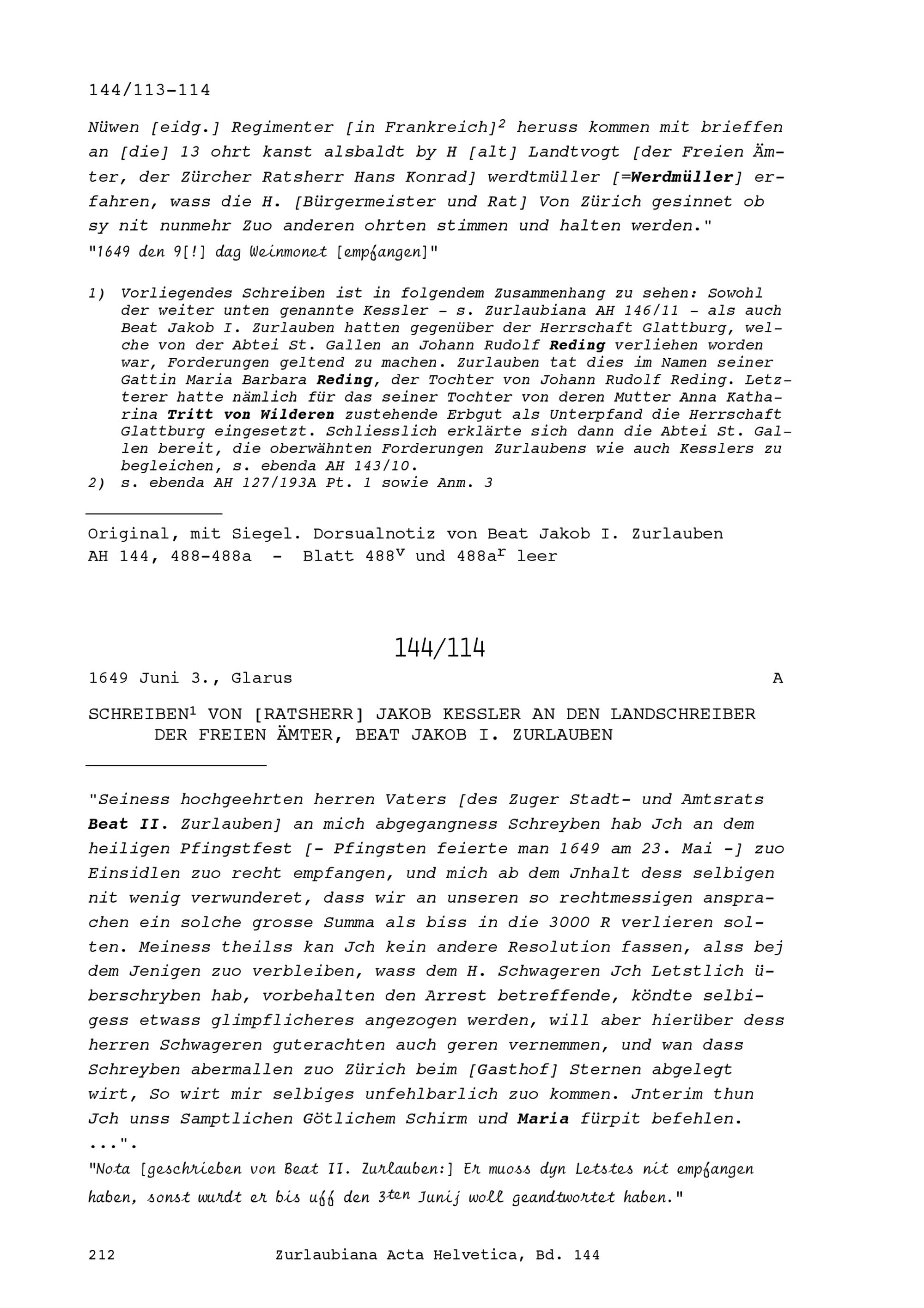 Schreiben von Jakob Kessler, Ratsherr, an Beat Jakob I. Zurlauben, Landschreiber der Freien Ämter