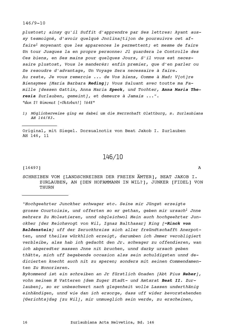 Schreiben von Beat Jakob I. Zurlauben, Landschreiber der Freien Ämter, an Fidel von Thurn, Hofammann in Will