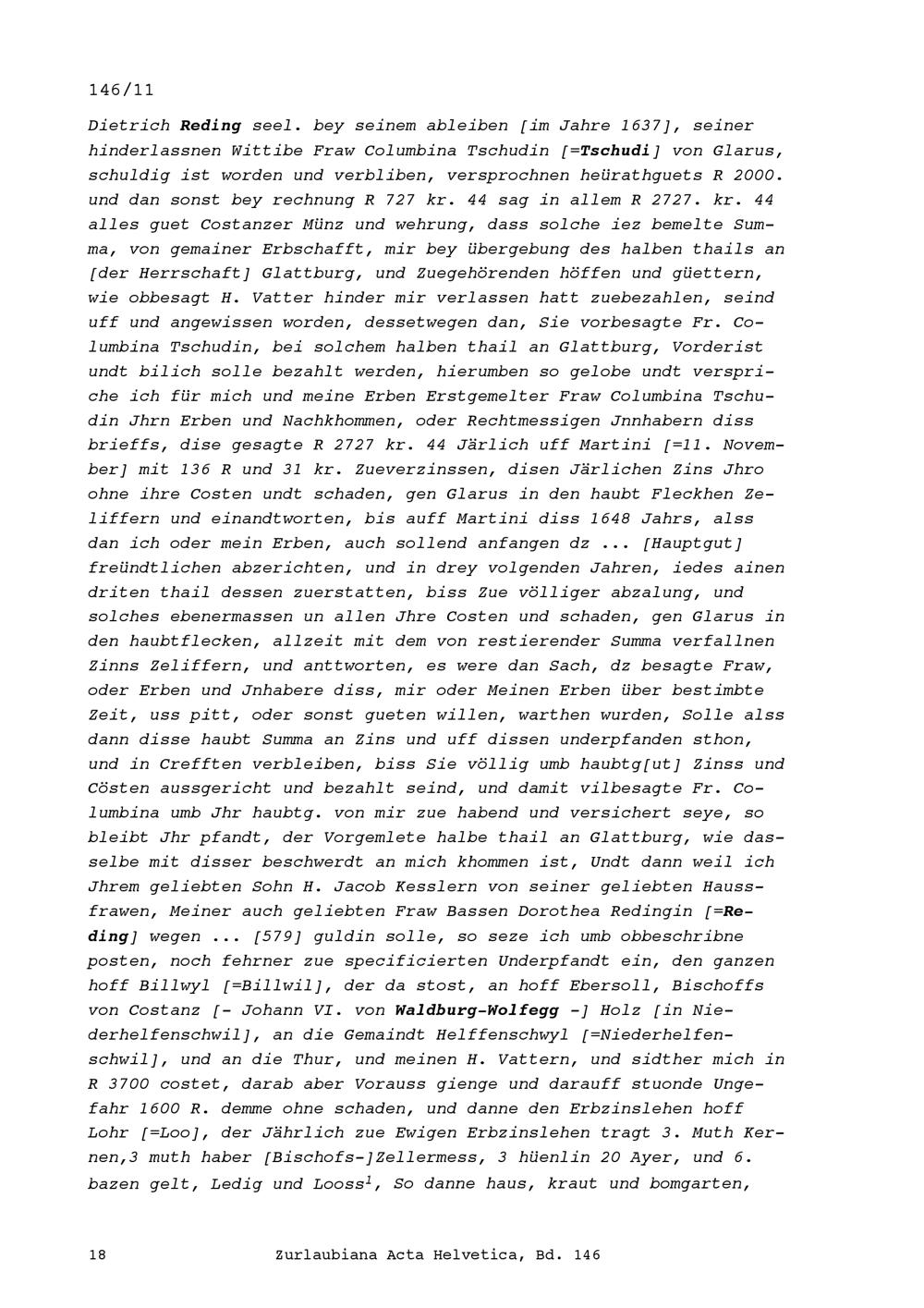 Schuldbrief zugunsten von Jakob Kessler betreffend die auf der Herrschaft Glattburg lastenden Schulden, ausgestellt von Johann Rudolf Reding, Herr der Herrschaft Glattburg
