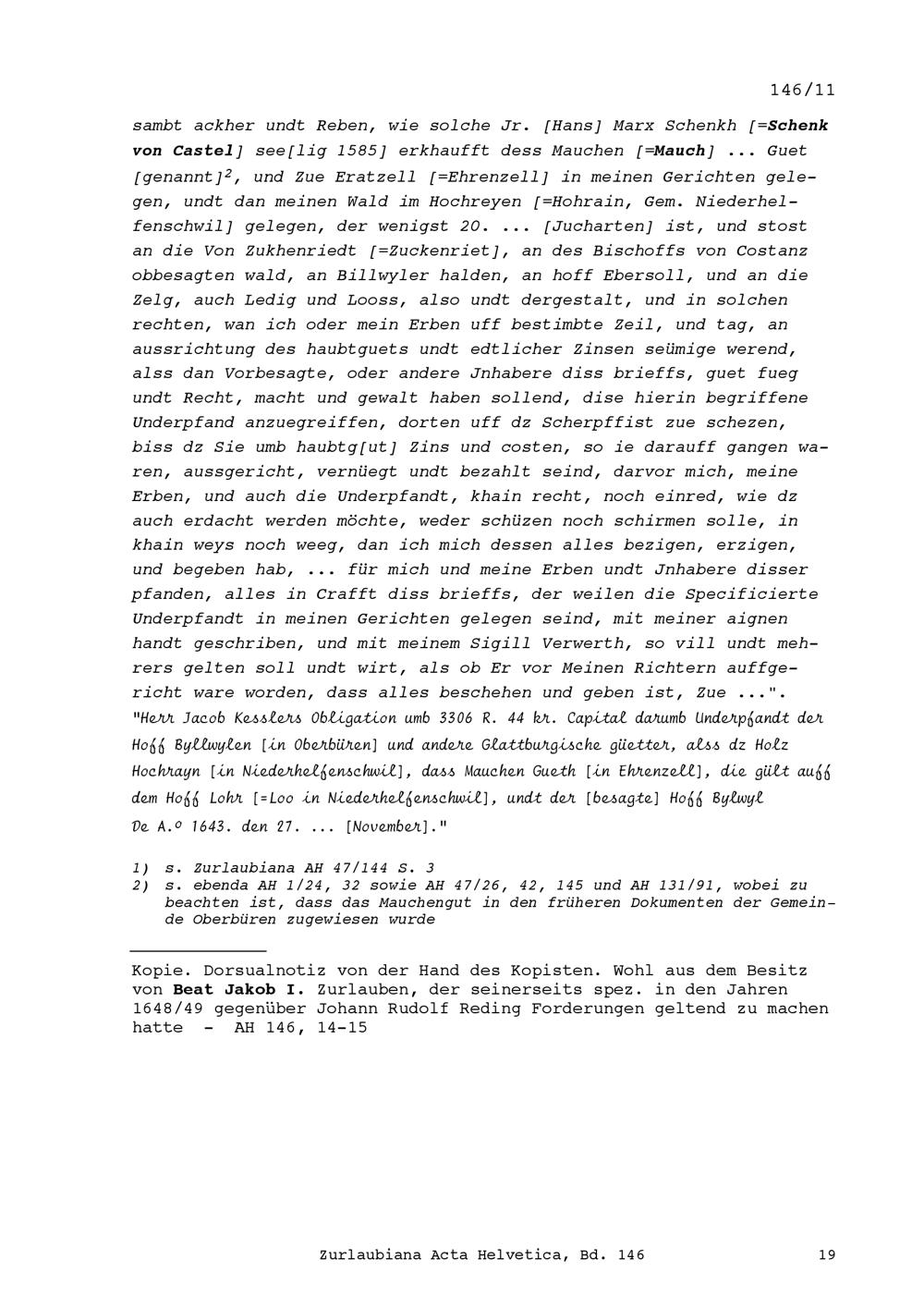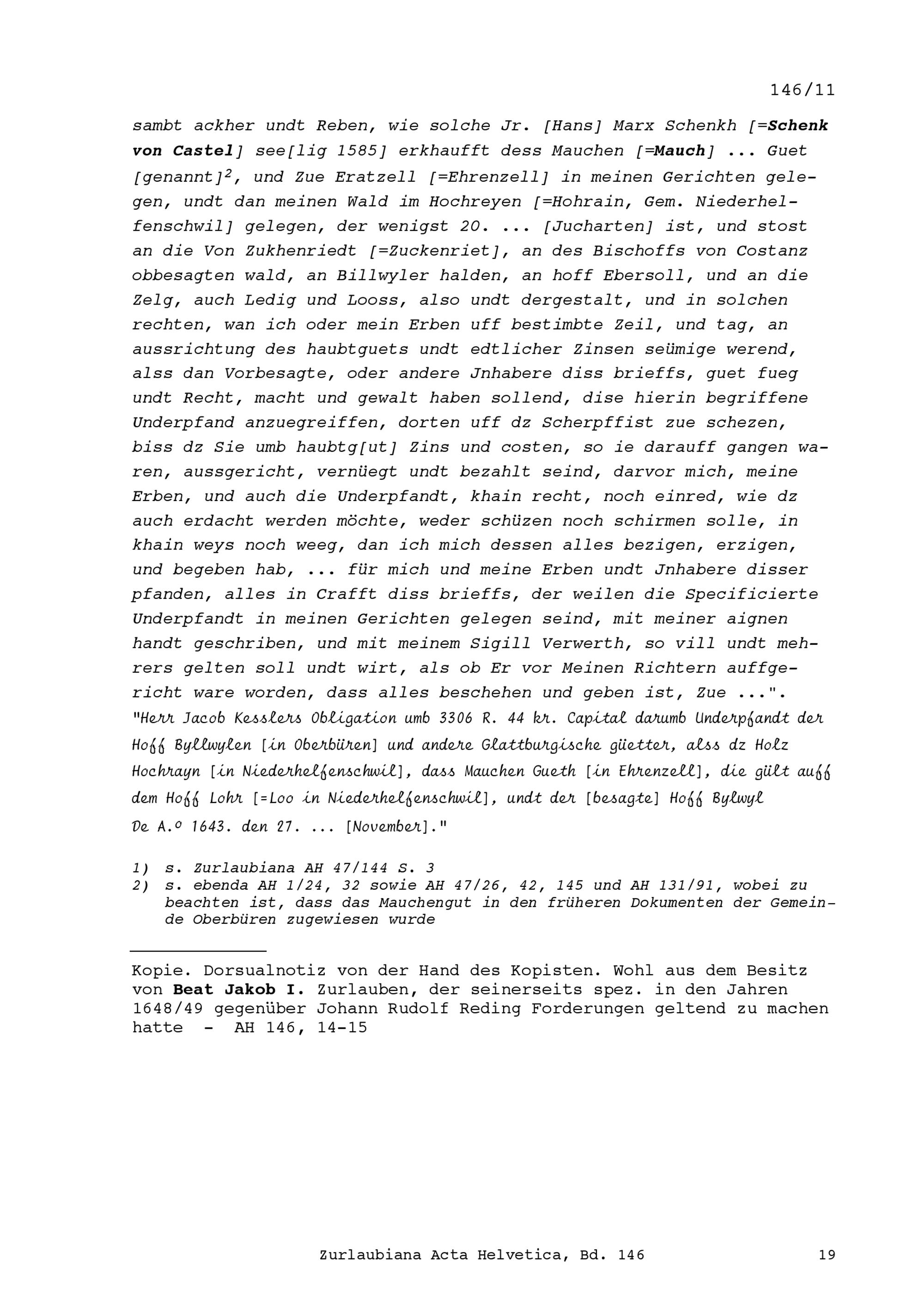 Schuldbrief zugunsten von Jakob Kessler betreffend die auf der Herrschaft Glattburg lastenden Schulden, ausgestellt von Johann Rudolf Reding, Herr der Herrschaft Glattburg