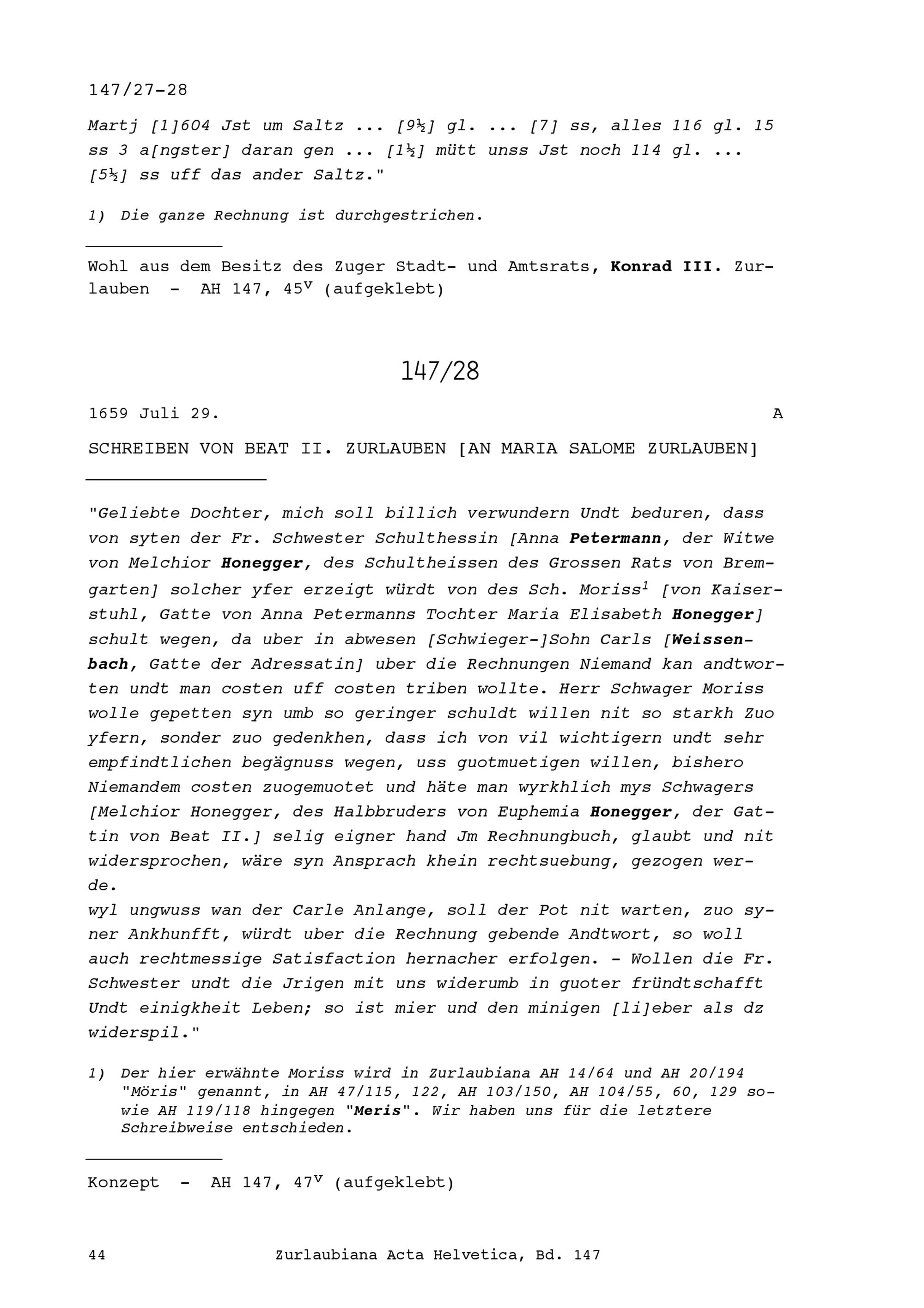 Schreiben von Beat II. Zurlauben an Maria Salome Zurlauben