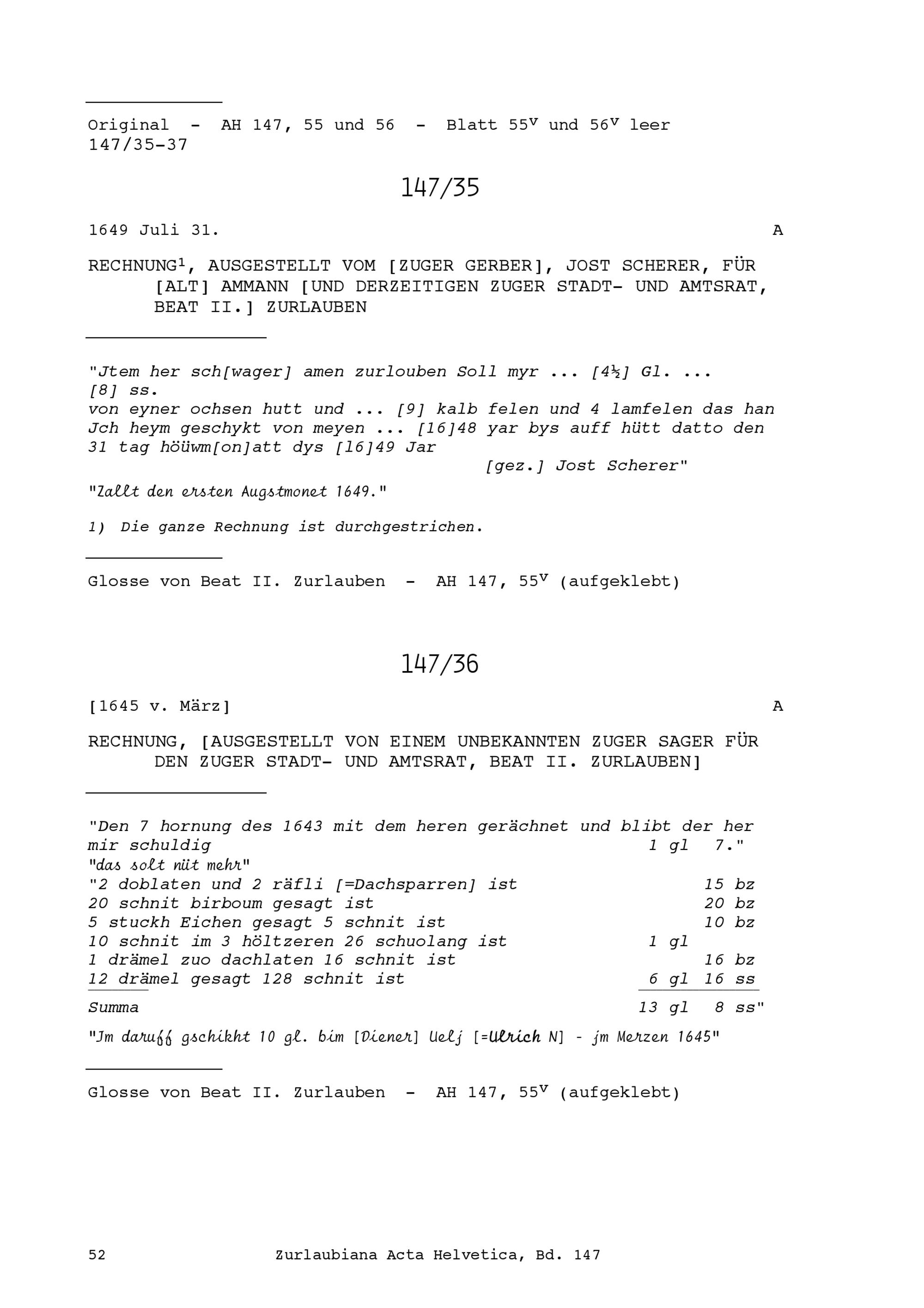 Rechnung für Beat II. Zurlauben, Altammann und Stadt- und Amtrat Zug, ausgestellt...