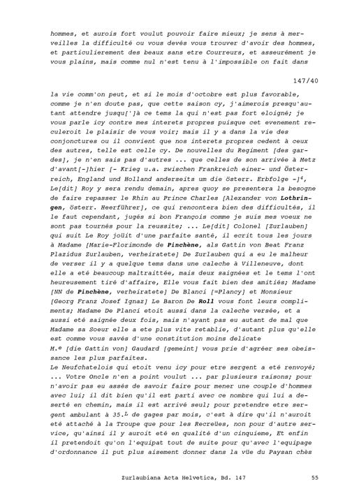 Schreiben von Jean-Henri Gaudard, Gardeleutnant, an Beat Fidel Zurlauben Hauptmann im Regiment der Schweizer Garden, Zug