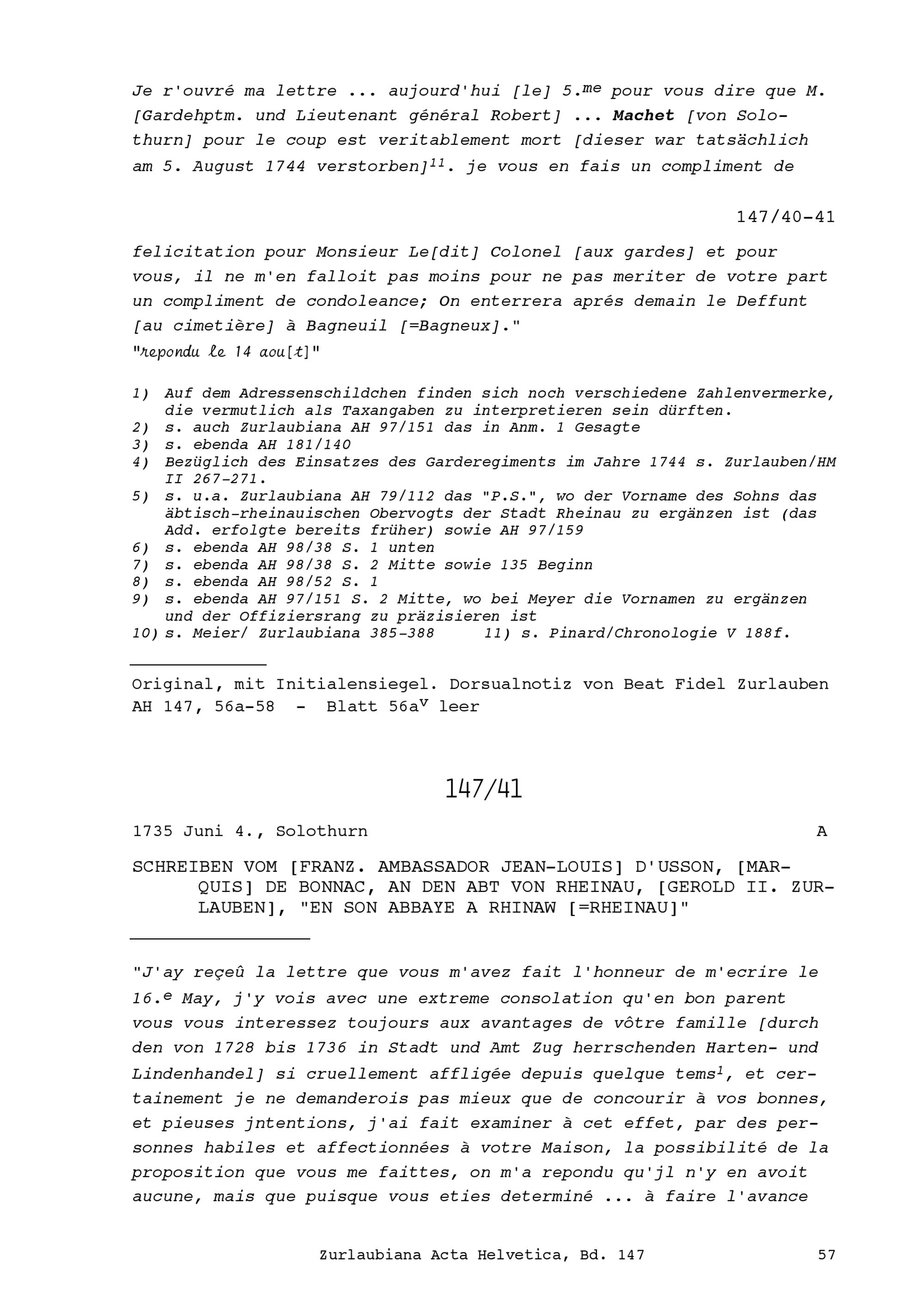 Schreiben von Jean-Louis d'Usson, Marquis de Bonnac, Ambassador von Frankreich, an Gerold II. Zurlauben, Abt von Rheinau, Rheinau