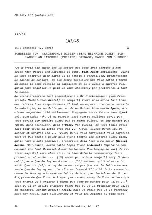 Schreiben von Beat Heinrich Josef Zurlauben, Gardehauptmann, an Philipp Dienast, Ratsherr, Basel