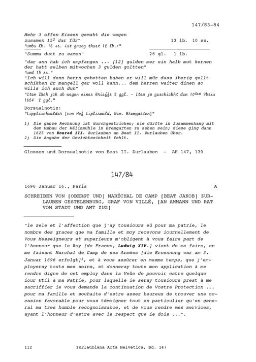 Schreiben von Beat Jakob Zurlauben, Oberst und Feldmarschall, an Ammann und Rat von...