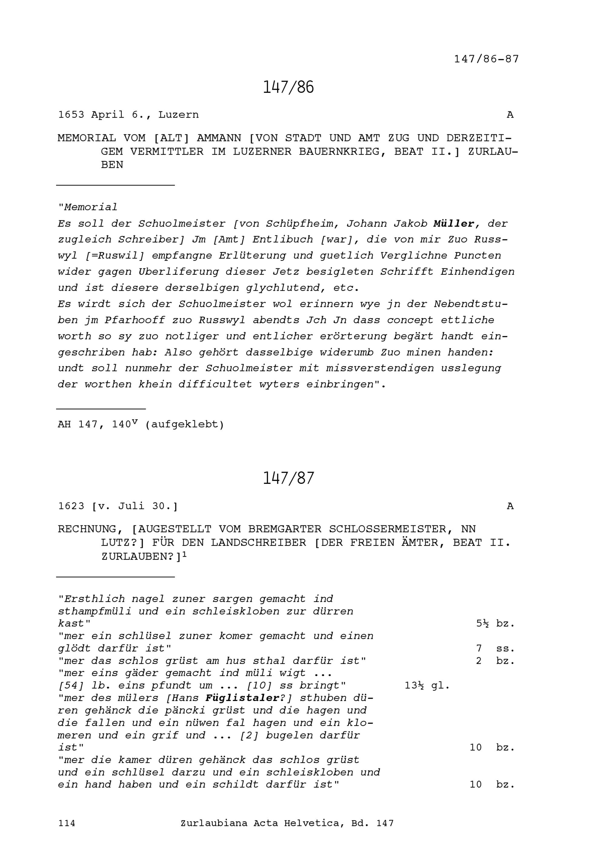 Bericht von Beat II. Zurlauben, Altammann von Stadt und Amt Zug und Vermittler im Luzerner Bauernkrieg