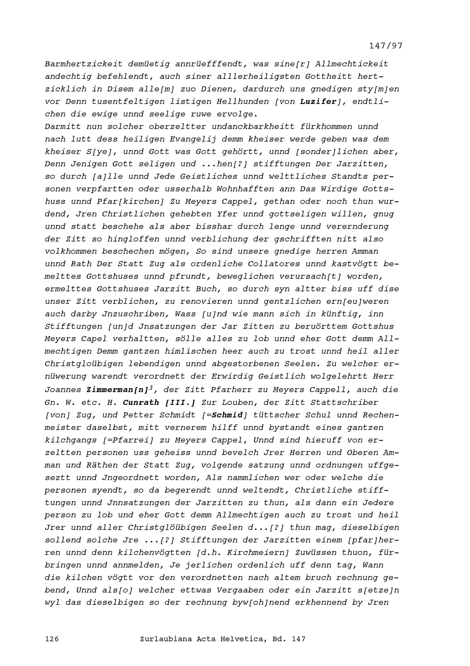 Ratsbeschluss des Ammanns und Rats der Stadt Zug, bezüglich des Jahrzeitenbuchs der Kirche von Meierskappel