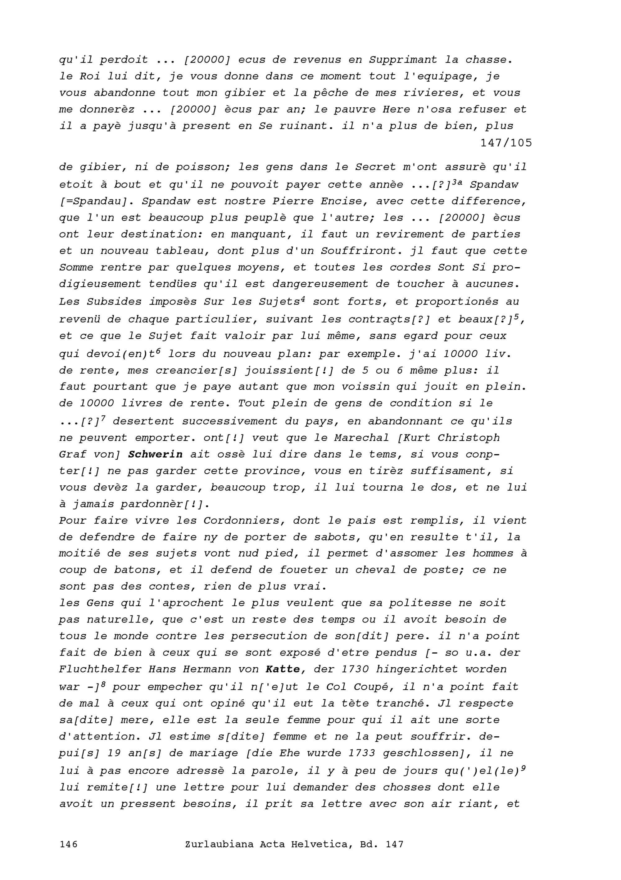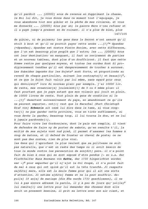 Beschreibung von Friedrich II. der Grosse, König von Brandenburg-Preussen, der Person und der des höfischen Umfelds, aufgezeichnet von Beat Fidel Zurlauben, Gardehauptmann und Brigadier