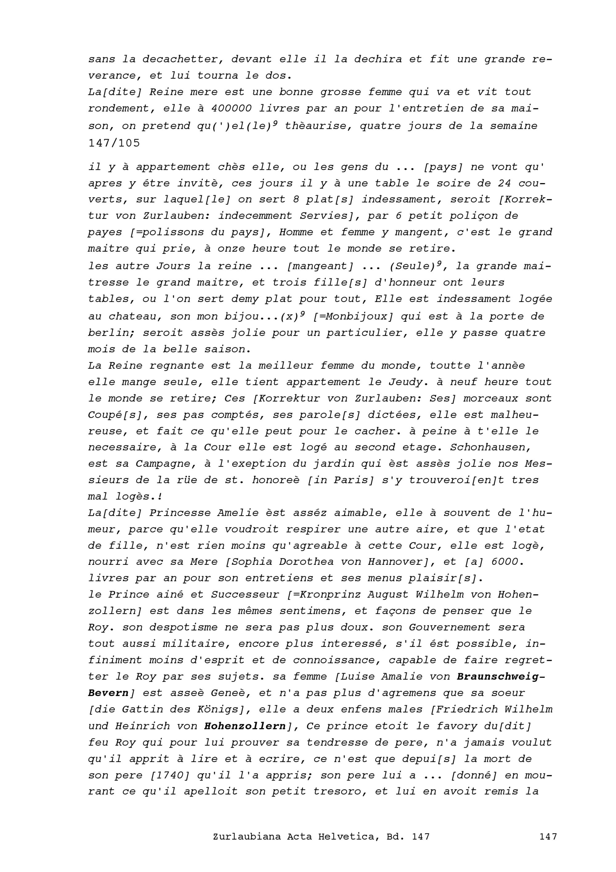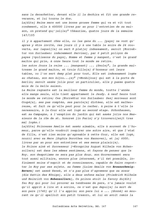 Beschreibung von Friedrich II. der Grosse, König von Brandenburg-Preussen, der Person und der des höfischen Umfelds, aufgezeichnet von Beat Fidel Zurlauben, Gardehauptmann und Brigadier