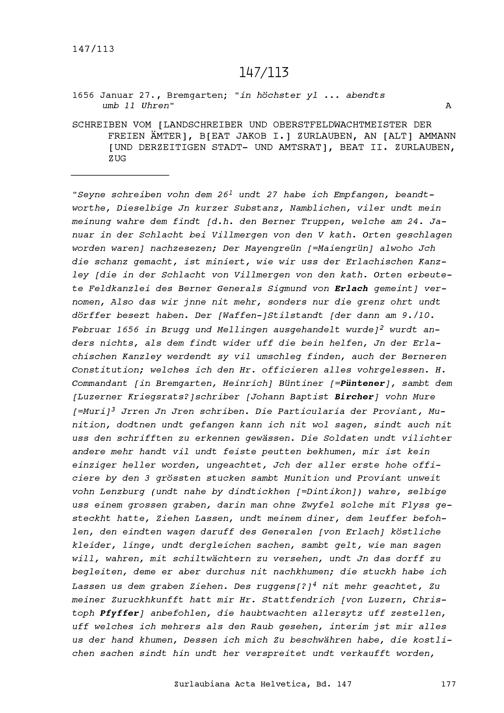 Schreiben von Beat Jakob I. Zurlauben, Landschreiber und Oberstfeldwachtmeister der...