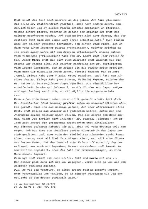 Schreiben von Beat Jakob I. Zurlauben, Landschreiber und Oberstfeldwachtmeister der...