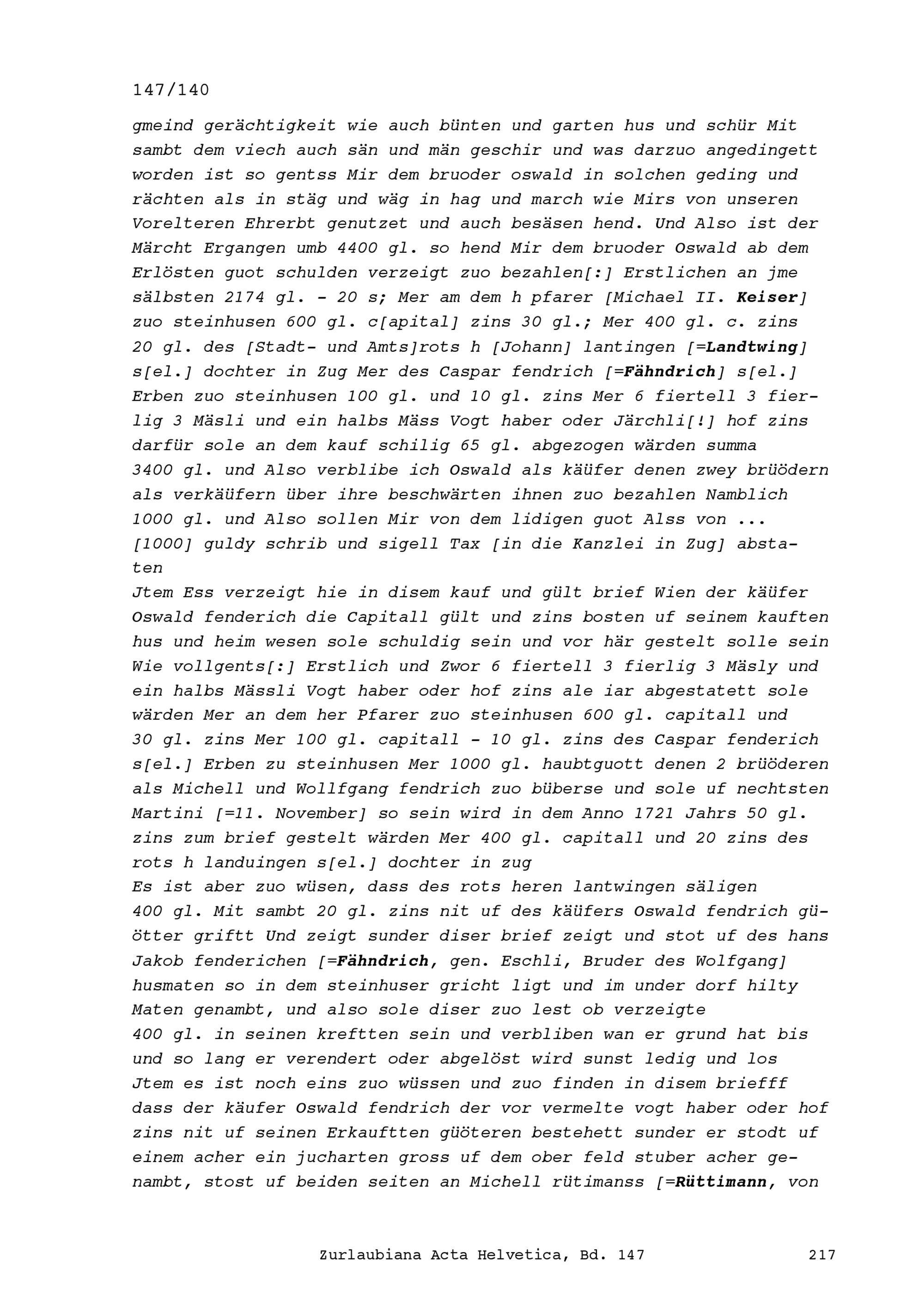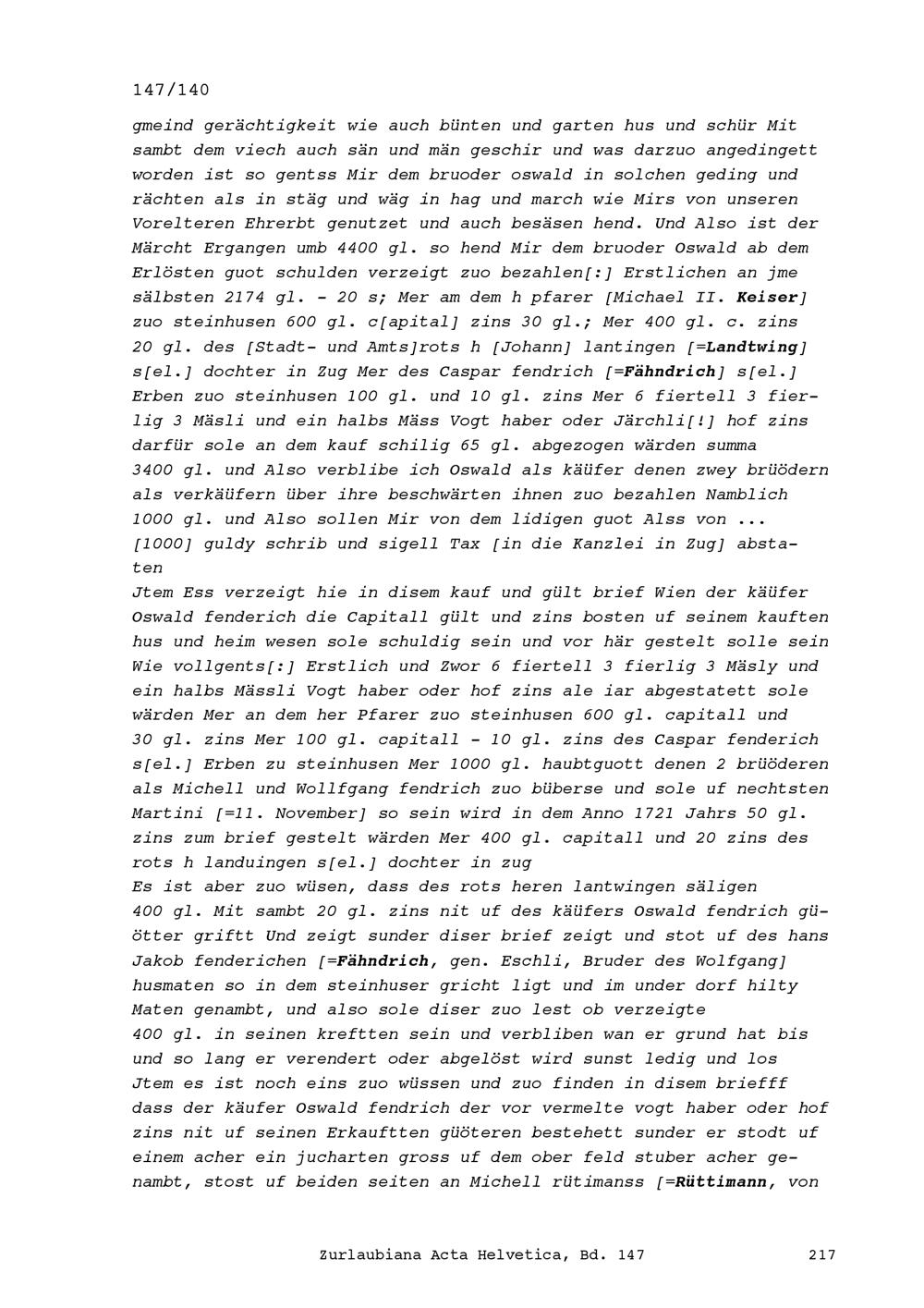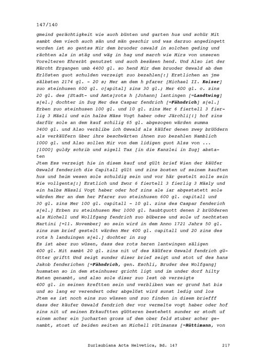 Kaufbrief für Oswald Fähndrich, aus der Zuger Vogtei Steinhausen, ausgestellt von Michael Fähndrich und von Wolfgang Fähndrich, von Bibersee, alles Brüder