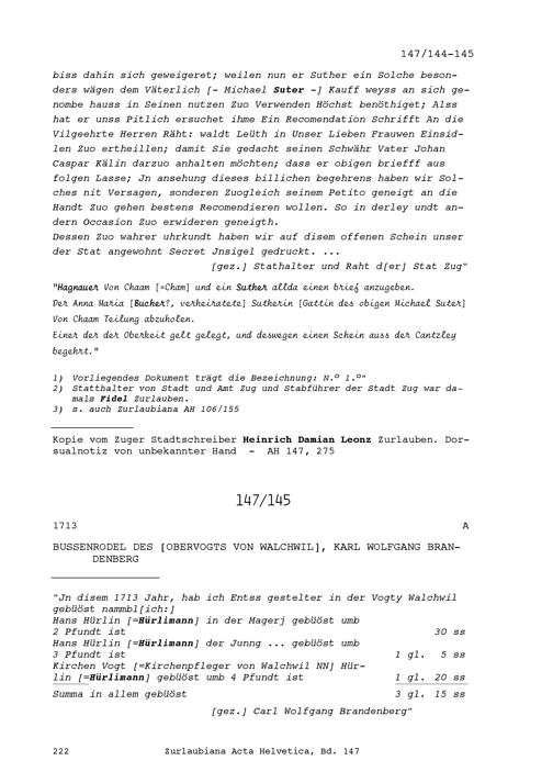 Bussenrodel von Karl Wolfgang Brandenberg, Obervogt von Walchwil