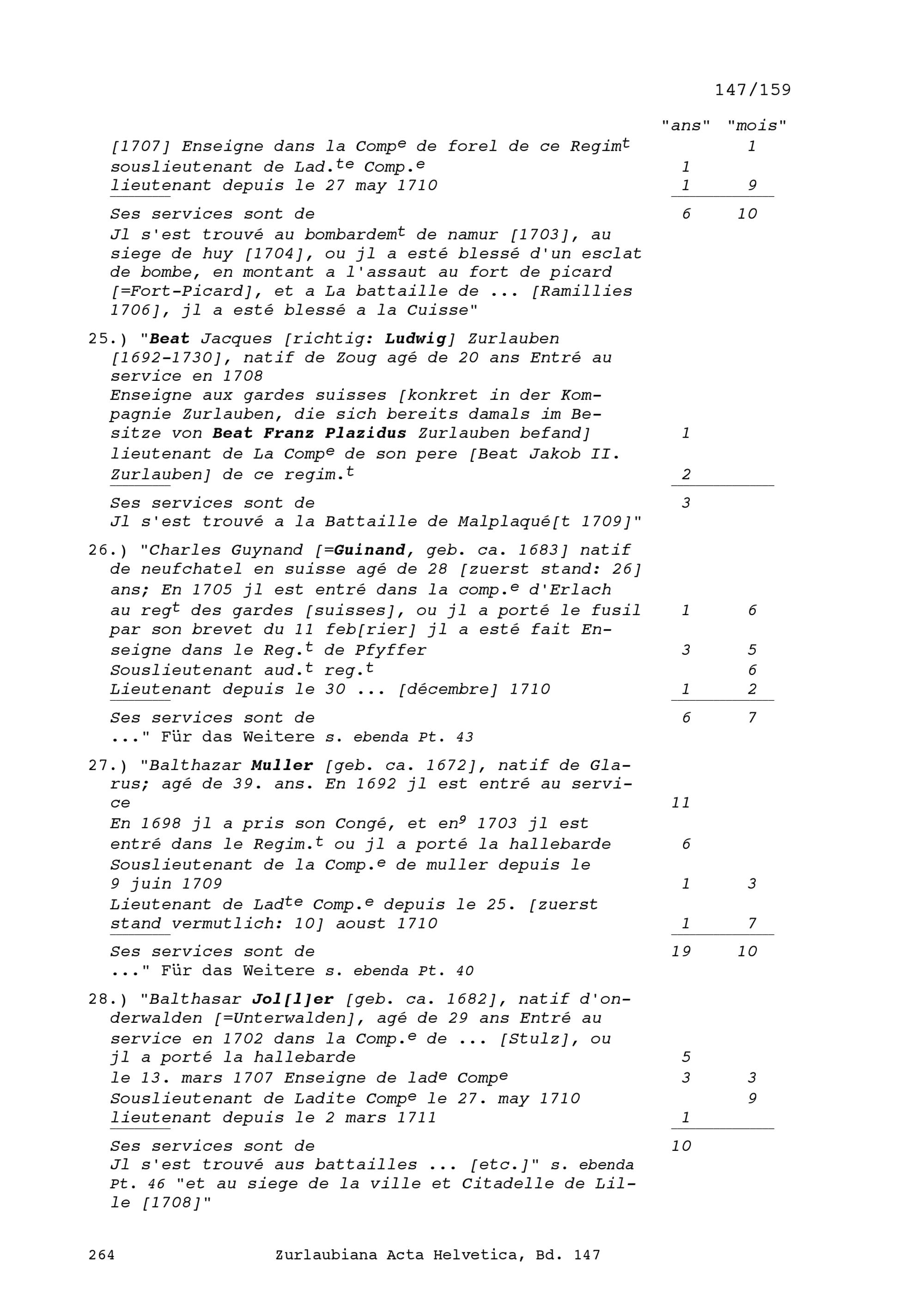 Mannschaftskontrolle der Offiziere im Schweizer Regiment Suisse von Ludwig Christoph Pfyffer, Oberst, nach Rang und Dienstalter