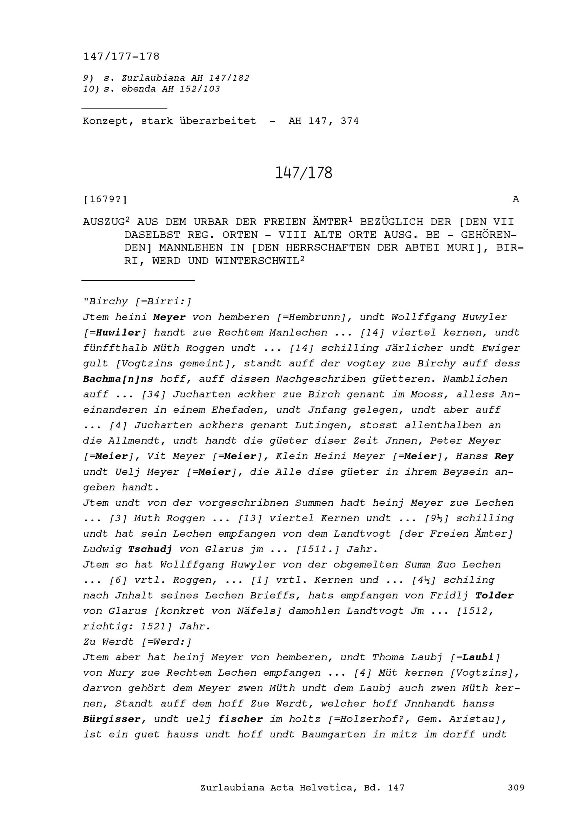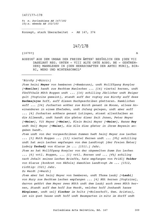 Urbar der Freien Ämter bezüglich der den Sieben regierenden Orten gehörenden Mannlehen in den Herrschaften der Abtei Muri, Birri, Werd und Winterschwil