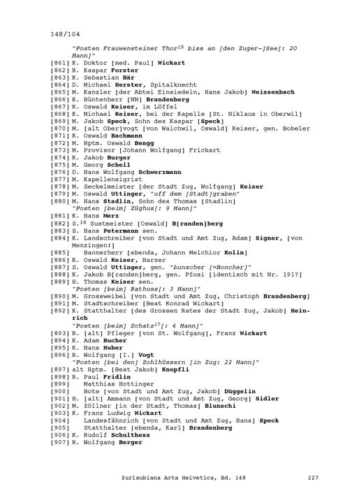 Ordnung und Aufgebot einer Burgerschaft zu Zug sowie der Beisassen und Untertanen...