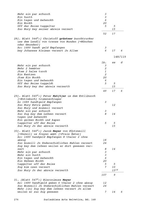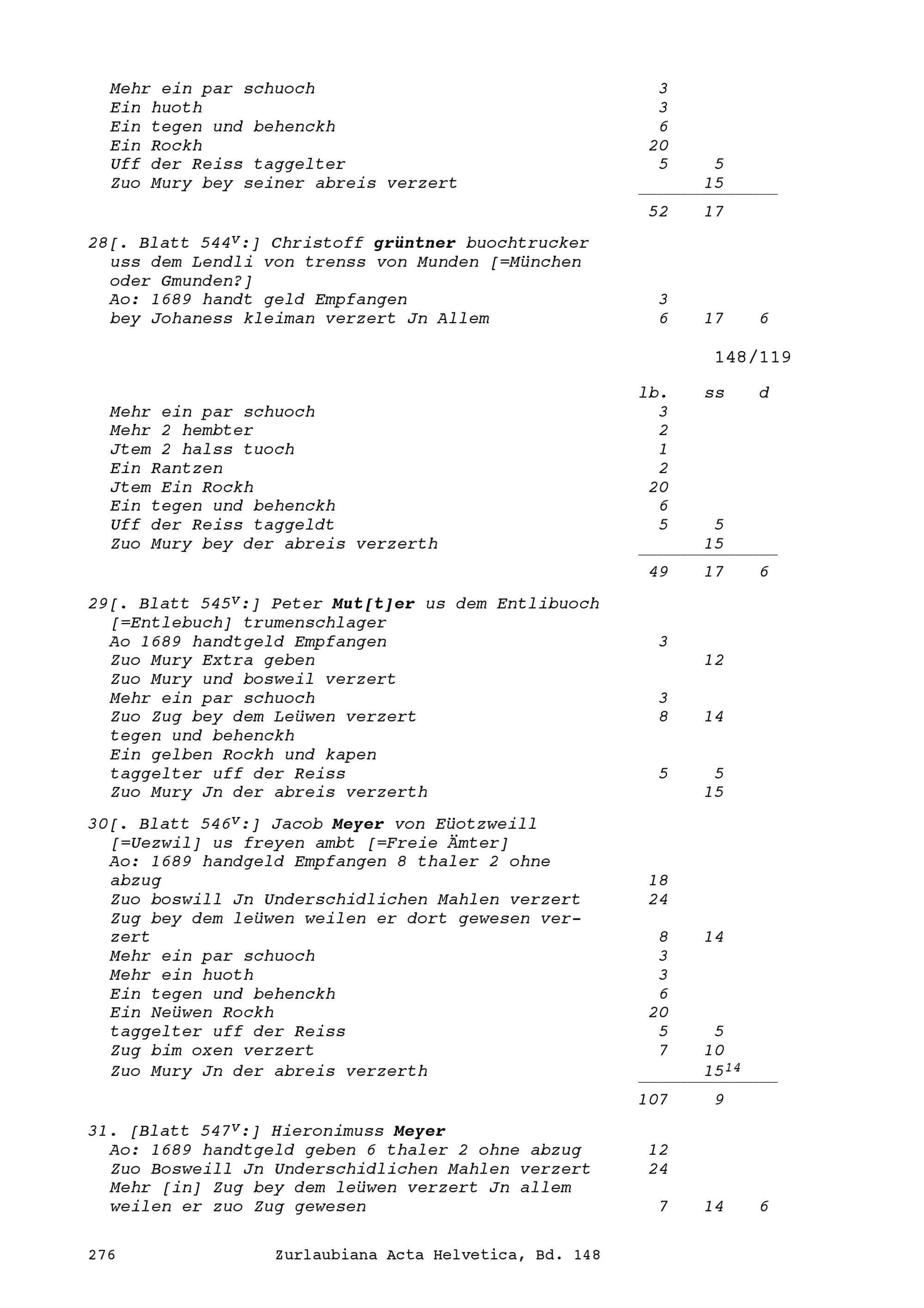 Abrechnung der für die Gardekompanie von Beat Heinrich Josef Zurlauben beziehungsweise die Kompanie von Beat Jakob II. Zurlauben im Regiment Stoppa, beide in französischen Diensten, geworbenen Soldaten