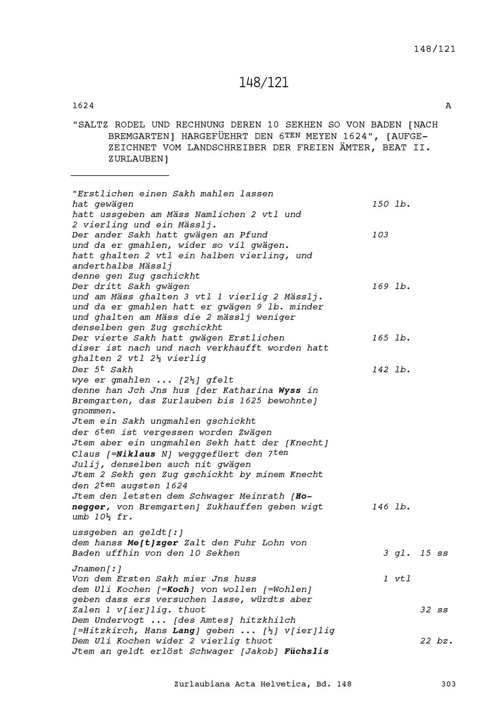 Salzrechnung für 10 Säcke Salz und deren Verkauf im Mai/Juni 1624, aufgezeichnet von Beat II. Zurlauben, Landschreiber der Freien Ämter