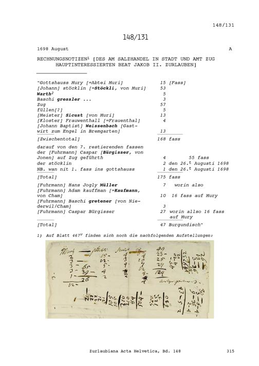 Rechnungsnotizen von Beat Jakob II. Zurlauben für Transporte