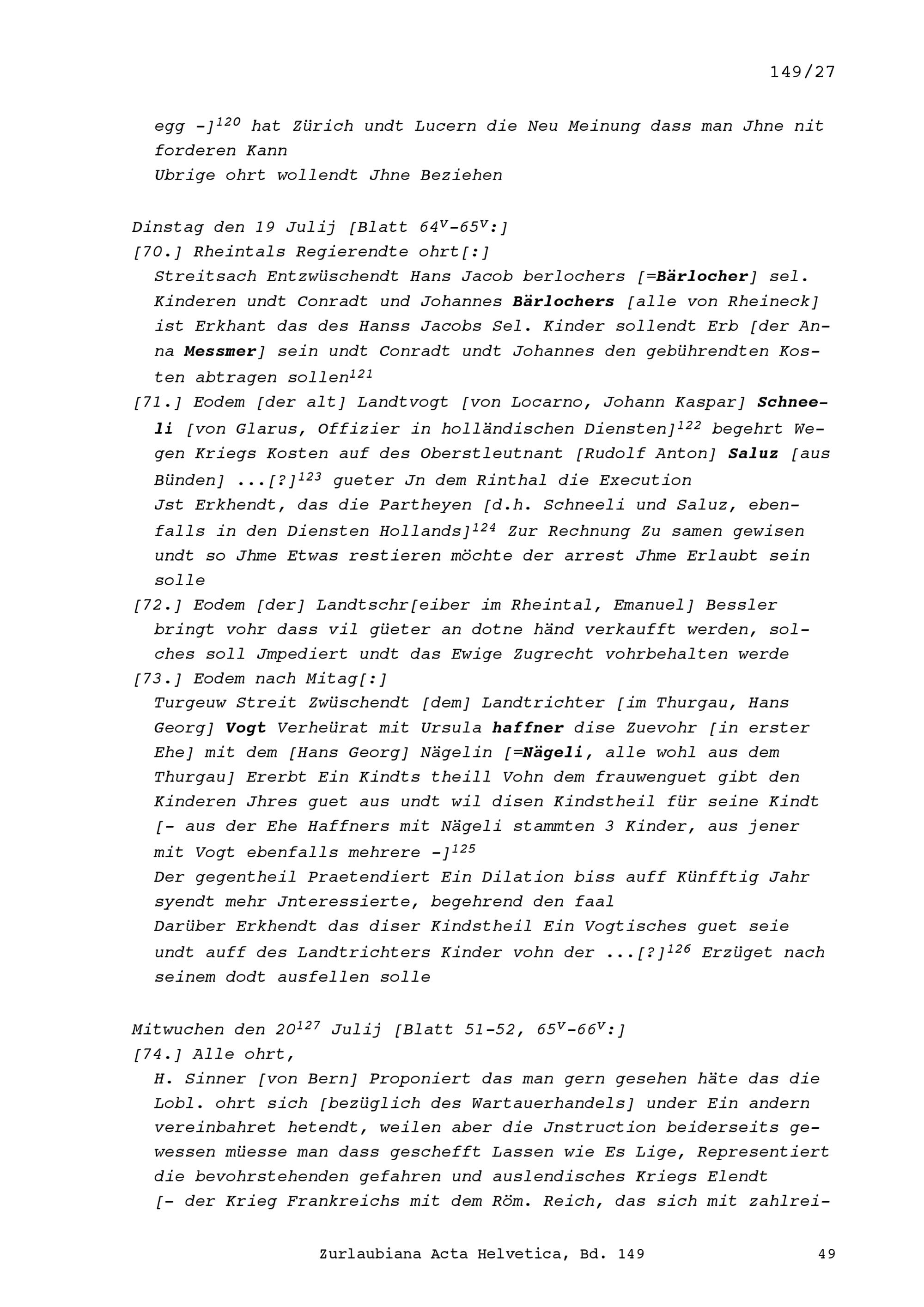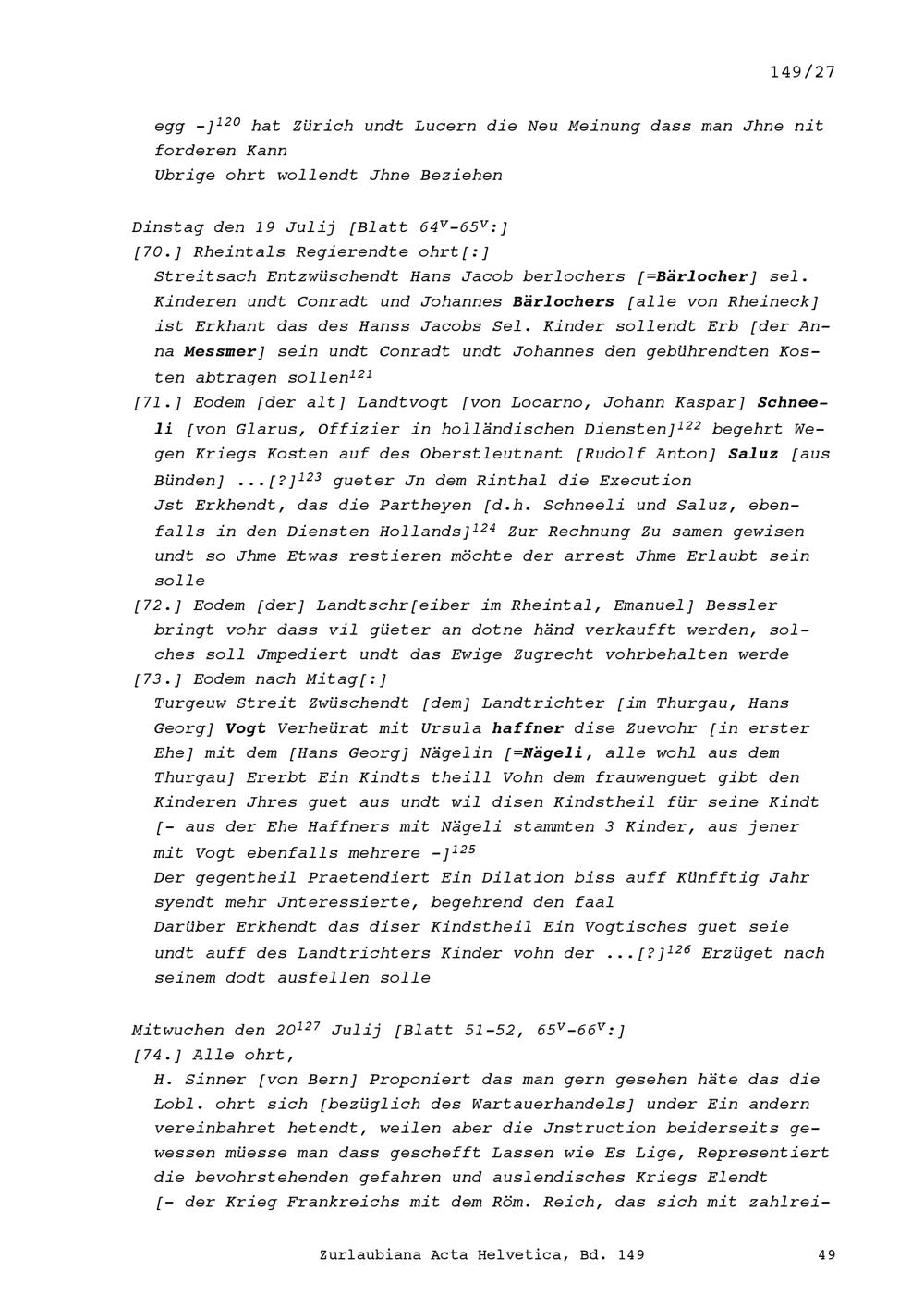 Notiz von Beat Kaspar Zurlauben, Tagsatzungsgesandter von Stadt und Amt Zug, über die am 4. Juli 1695 in Baden begonnene Jahrrechnung