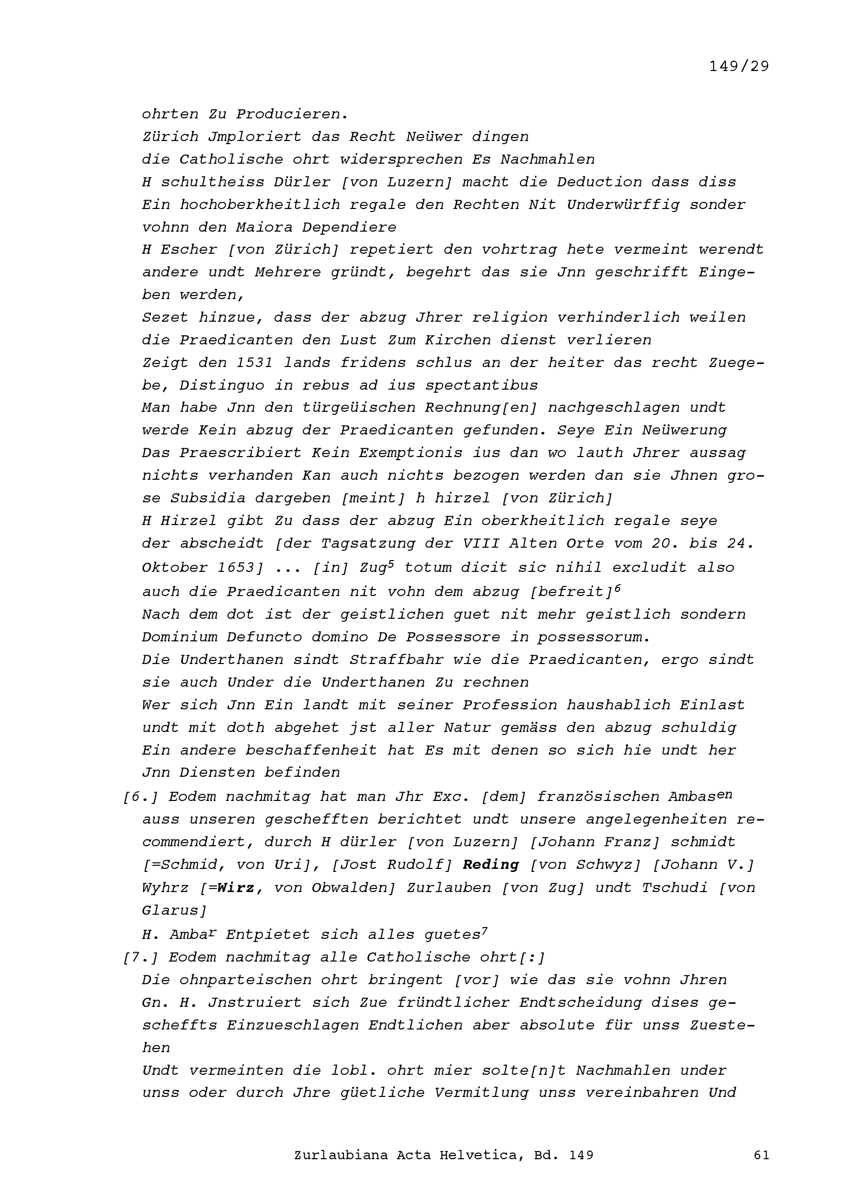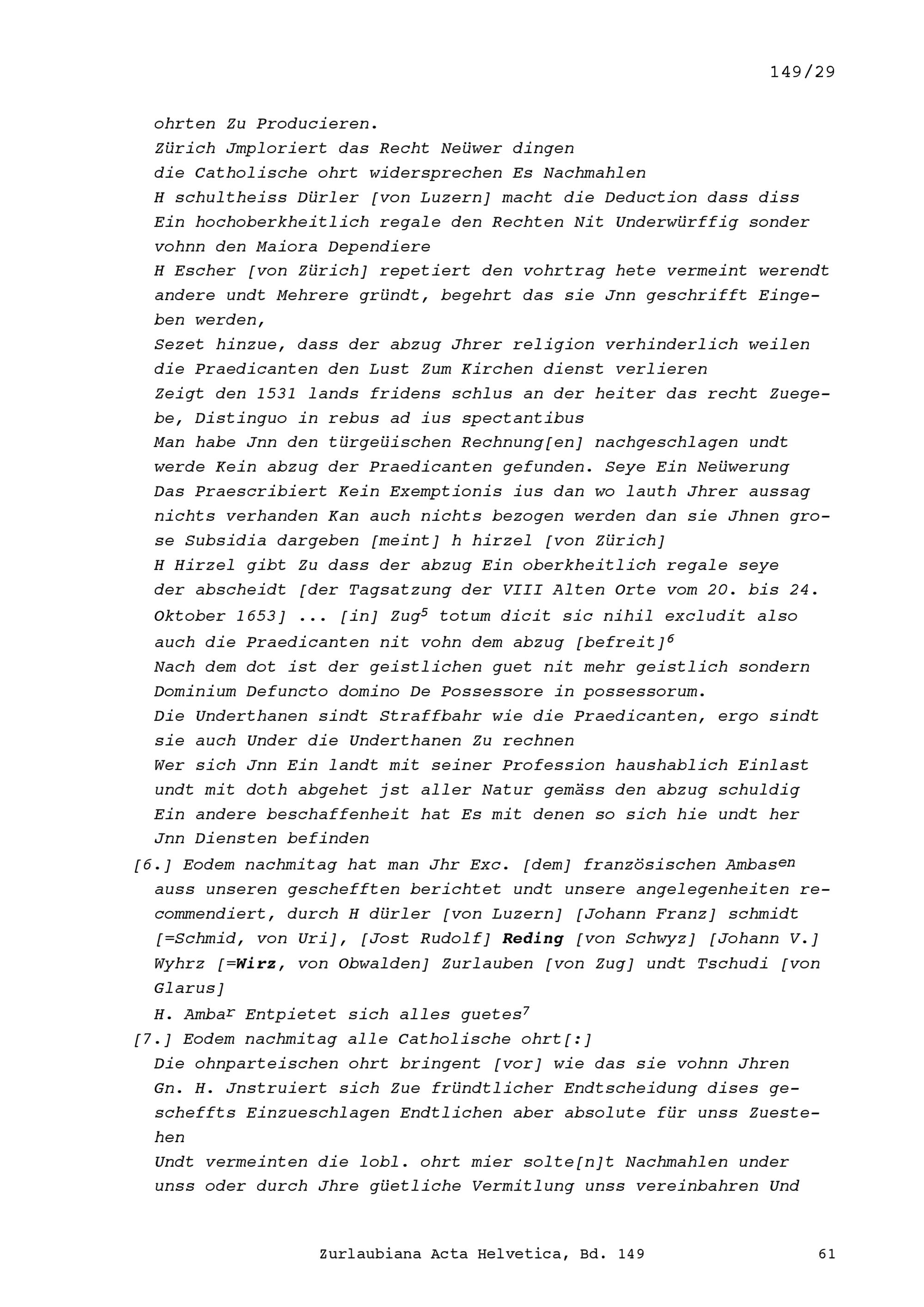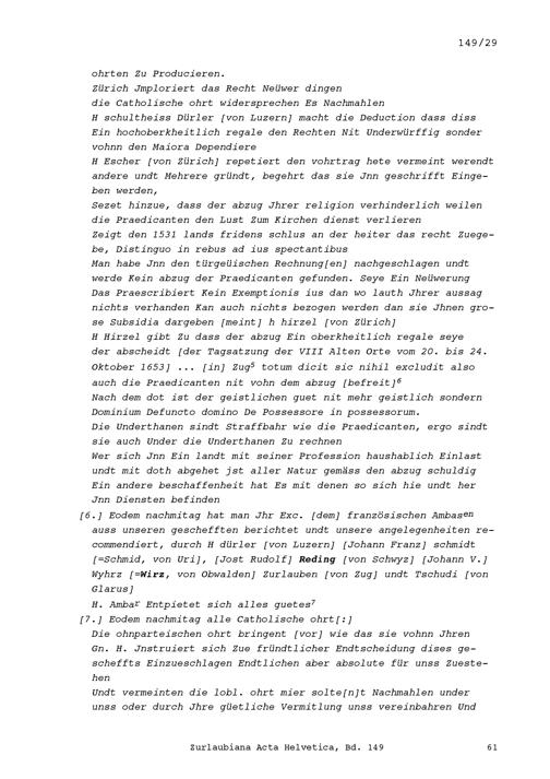 Notiz von Beat Kaspar Zurlauben, Tagsatzungsgesandter von Stadt und Amt Zug, über die Tagsatzung der Dreizehn Orte in Baden vom 26. August bis 6. September 1693