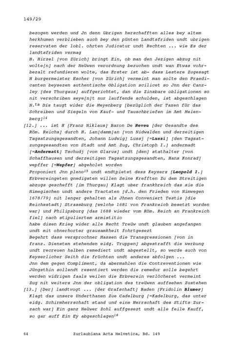 Notiz von Beat Kaspar Zurlauben, Tagsatzungsgesandter von Stadt und Amt Zug, über die Tagsatzung der Dreizehn Orte in Baden vom 26. August bis 6. September 1693