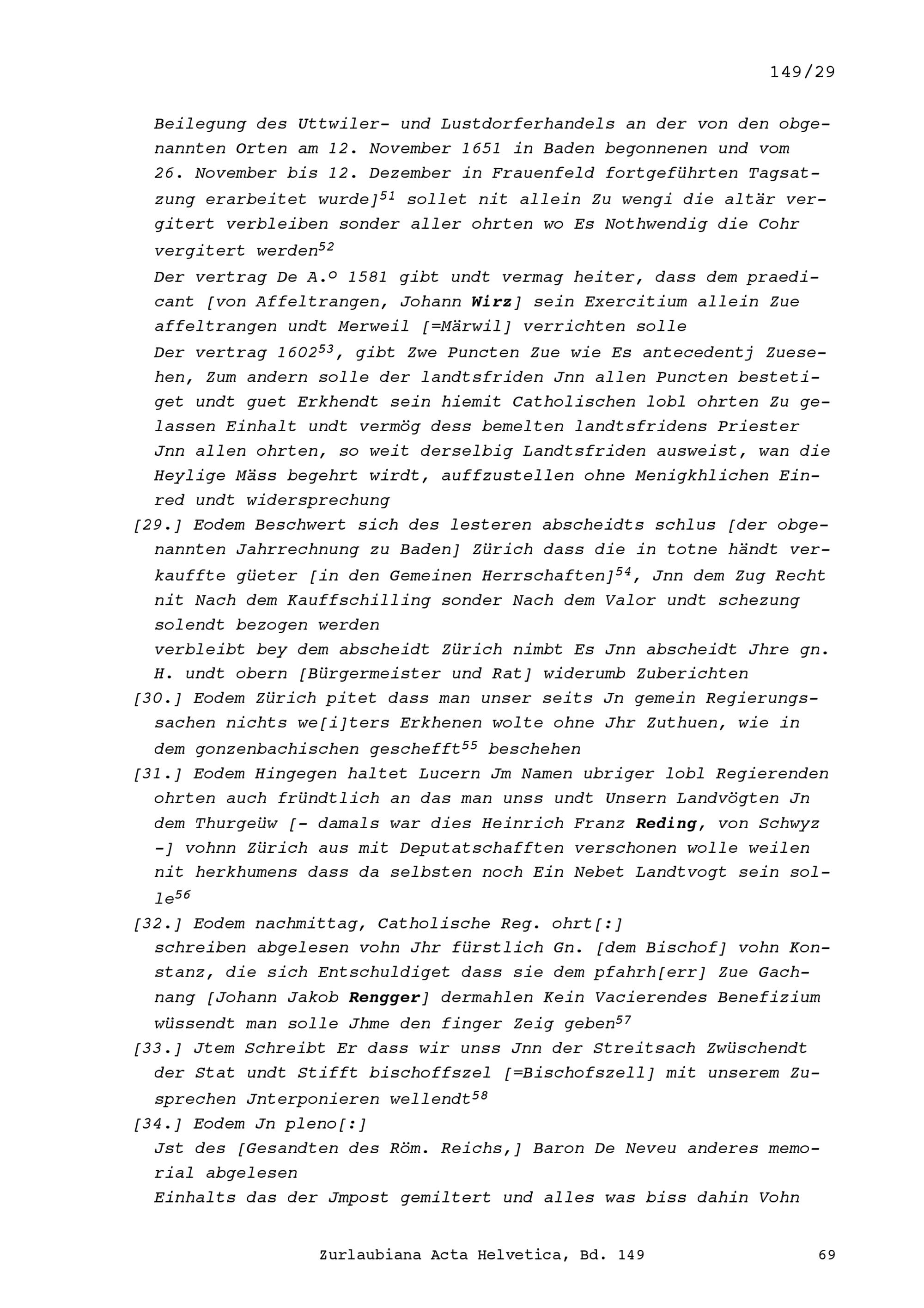 Notiz von Beat Kaspar Zurlauben, Tagsatzungsgesandter von Stadt und Amt Zug, über die Tagsatzung der Dreizehn Orte in Baden vom 26. August bis 6. September 1693