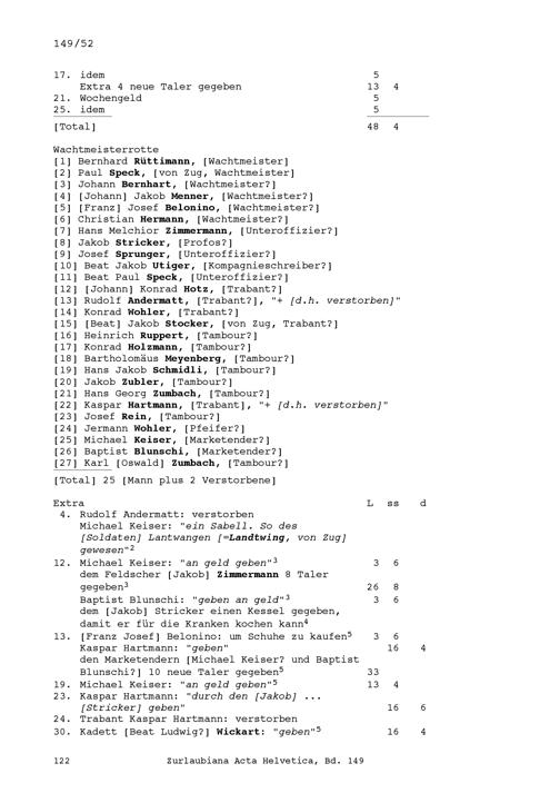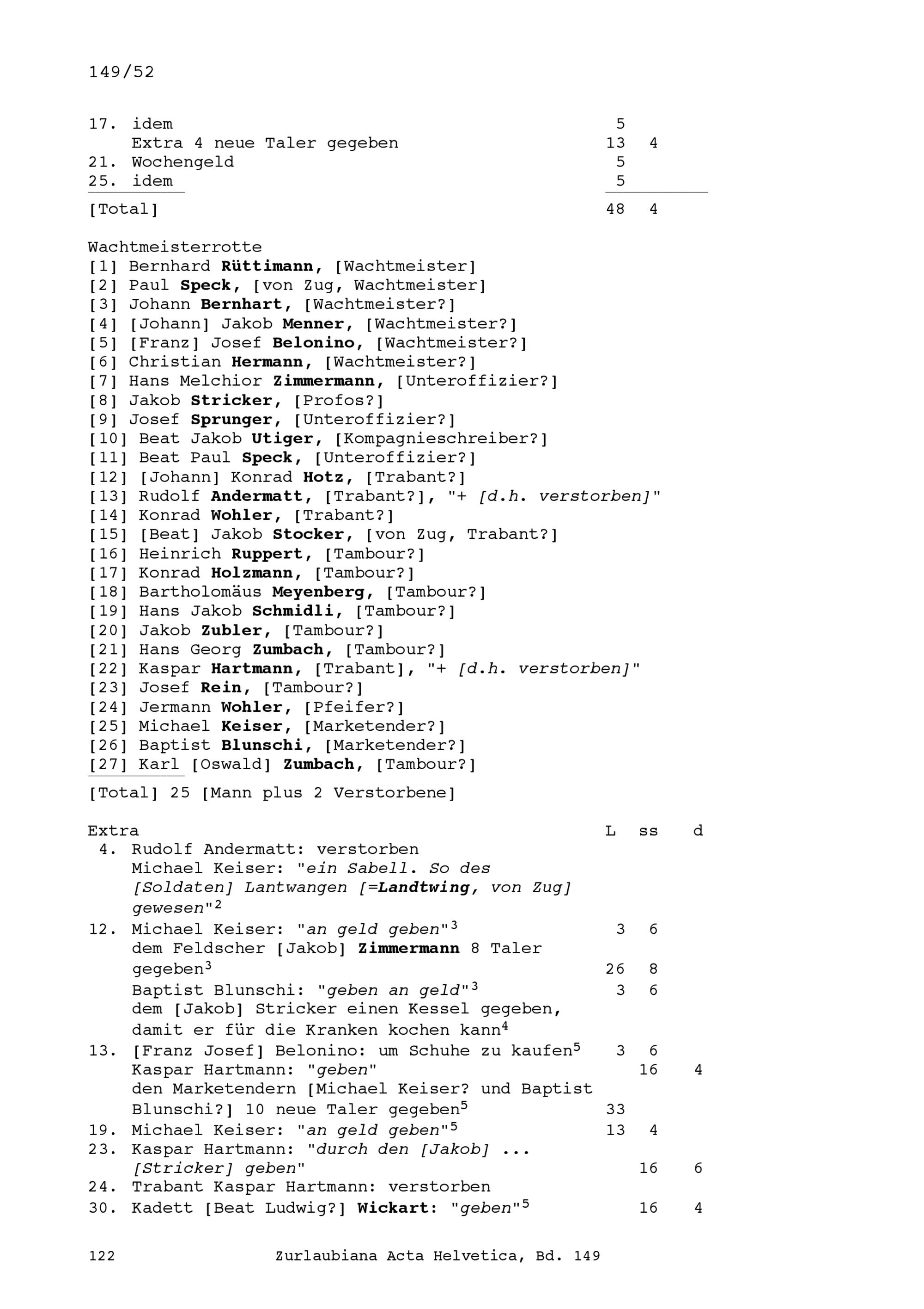Mannschafts- und Soldrodel der Kompanie von Beat Jakob II. Zurlauben, Hauptmann, im Regiment alt Stoppa in französischen Diensten