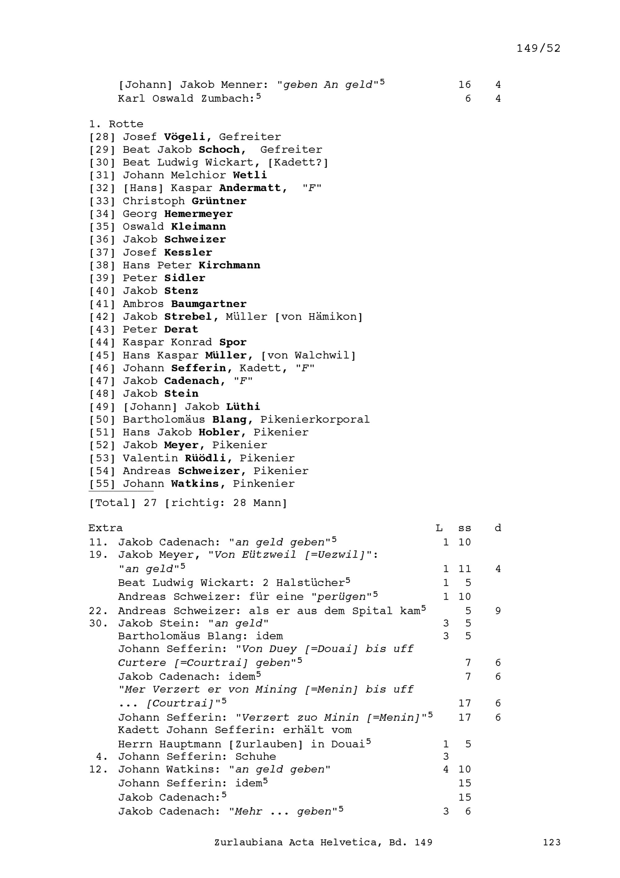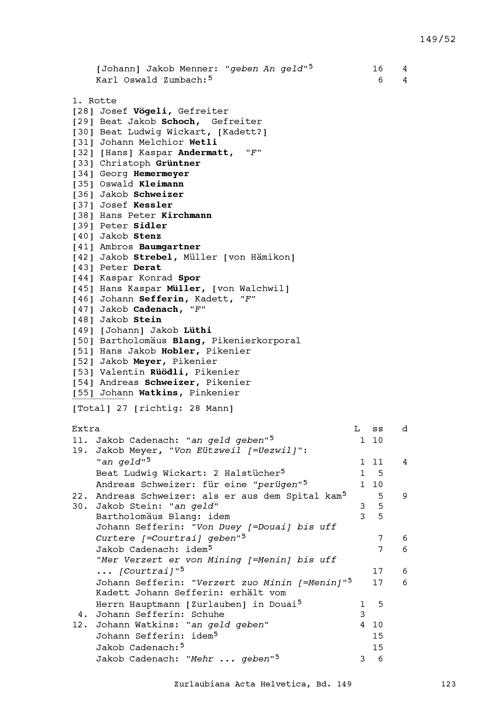 Mannschafts- und Soldrodel der Kompanie von Beat Jakob II. Zurlauben, Hauptmann,...