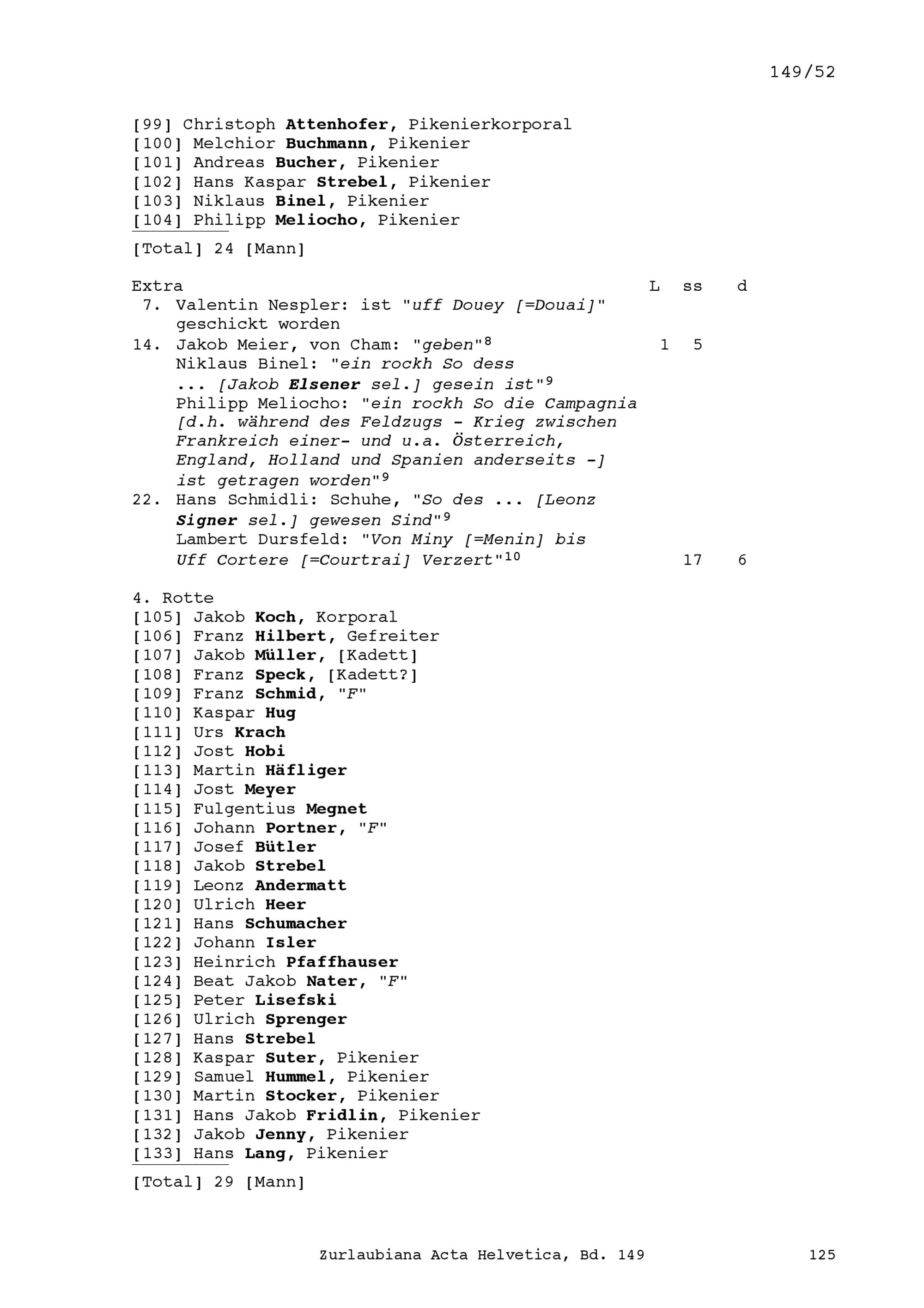 Mannschafts- und Soldrodel der Kompanie von Beat Jakob II. Zurlauben, Hauptmann, im Regiment alt Stoppa in französischen Diensten