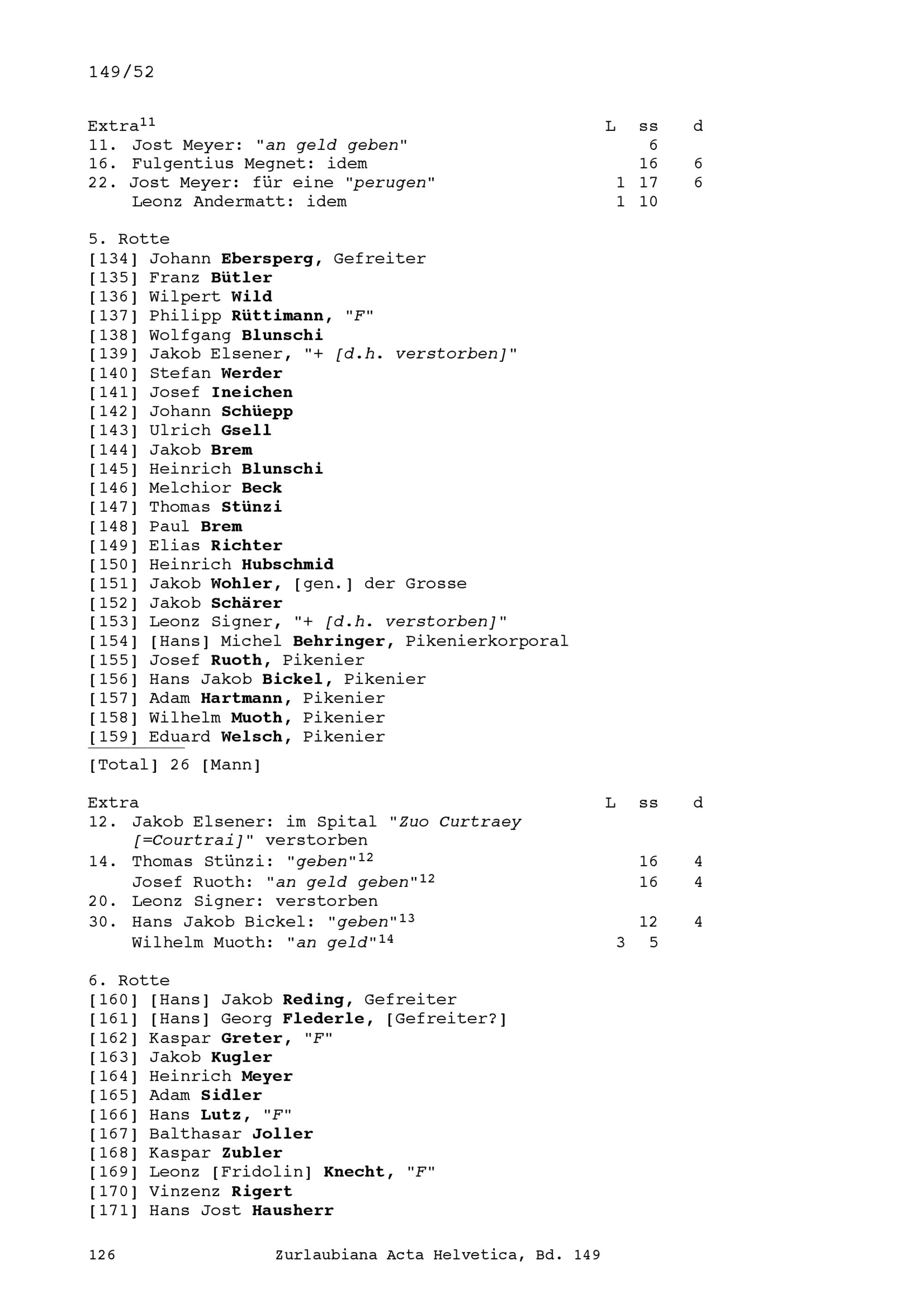 Mannschafts- und Soldrodel der Kompanie von Beat Jakob II. Zurlauben, Hauptmann, im Regiment alt Stoppa in französischen Diensten