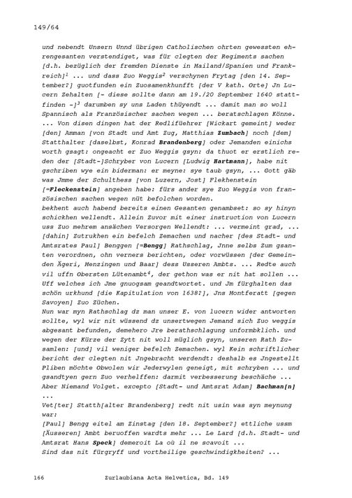 Notiz von Beat II. Zurlauben, Stabführer der Stadt Zug, unter anderem über Wolfgang...