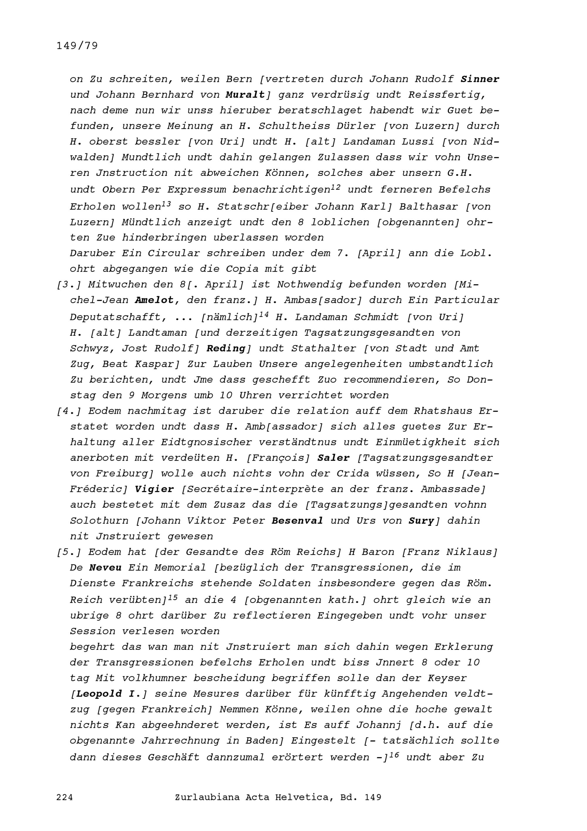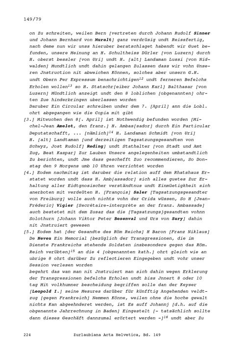 Notiz von Beat Kaspar Zurlauben, Tagsatzungsgesandter von Stadt und Amt Zug, über die Tagsatzung der Zwölf die Ennetbirgischen Vogteien regierenden Orte Dreizehn Ortein Bremgarten, begonnen am 6. April 1693