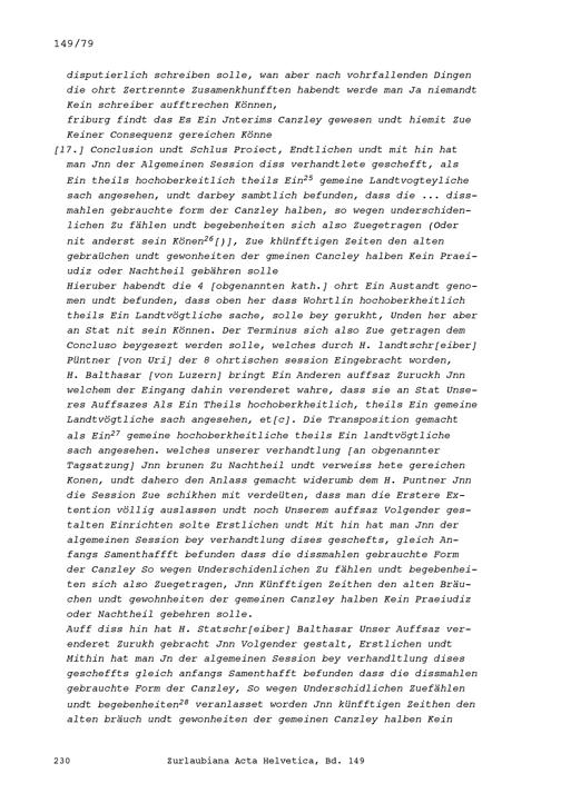 Notiz von Beat Kaspar Zurlauben, Tagsatzungsgesandter von Stadt und Amt Zug, über die Tagsatzung der Zwölf die Ennetbirgischen Vogteien regierenden Orte Dreizehn Ortein Bremgarten, begonnen am 6. April 1693