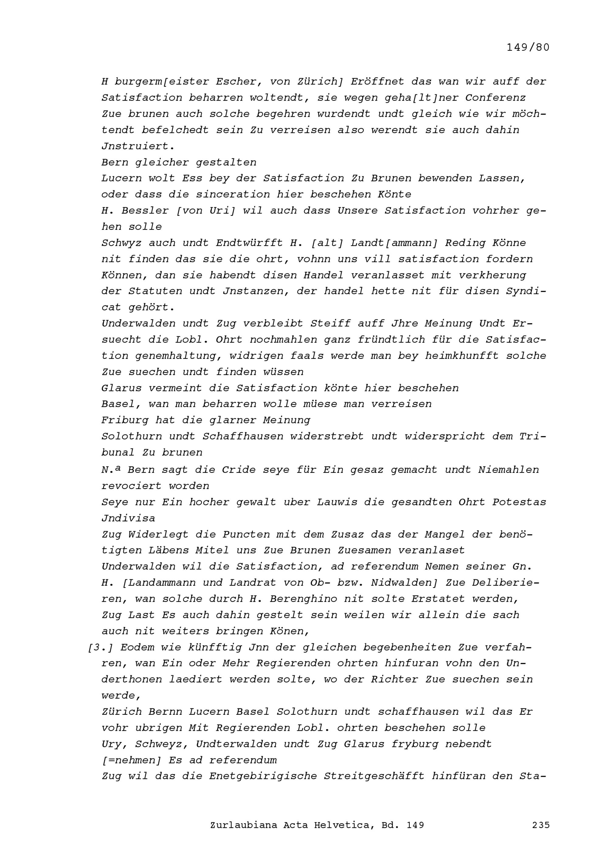 Notiz von Beat Kaspar Zurlauben, Tagsatzungsgesandter von Stadt und Amt Zug, über die Tagsatzung der Zwölf die Ennetbirgischen Vogteien regierenden Orte Dreizehn Orte in Bremgarten, begonnen am 6. April 1693