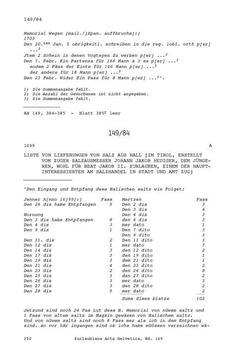 Acta Helvetica, Band 149