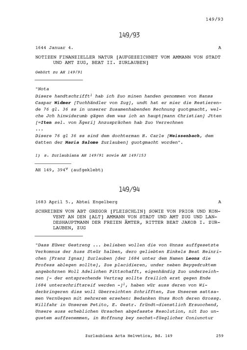 Acta Helvetica, Band 149