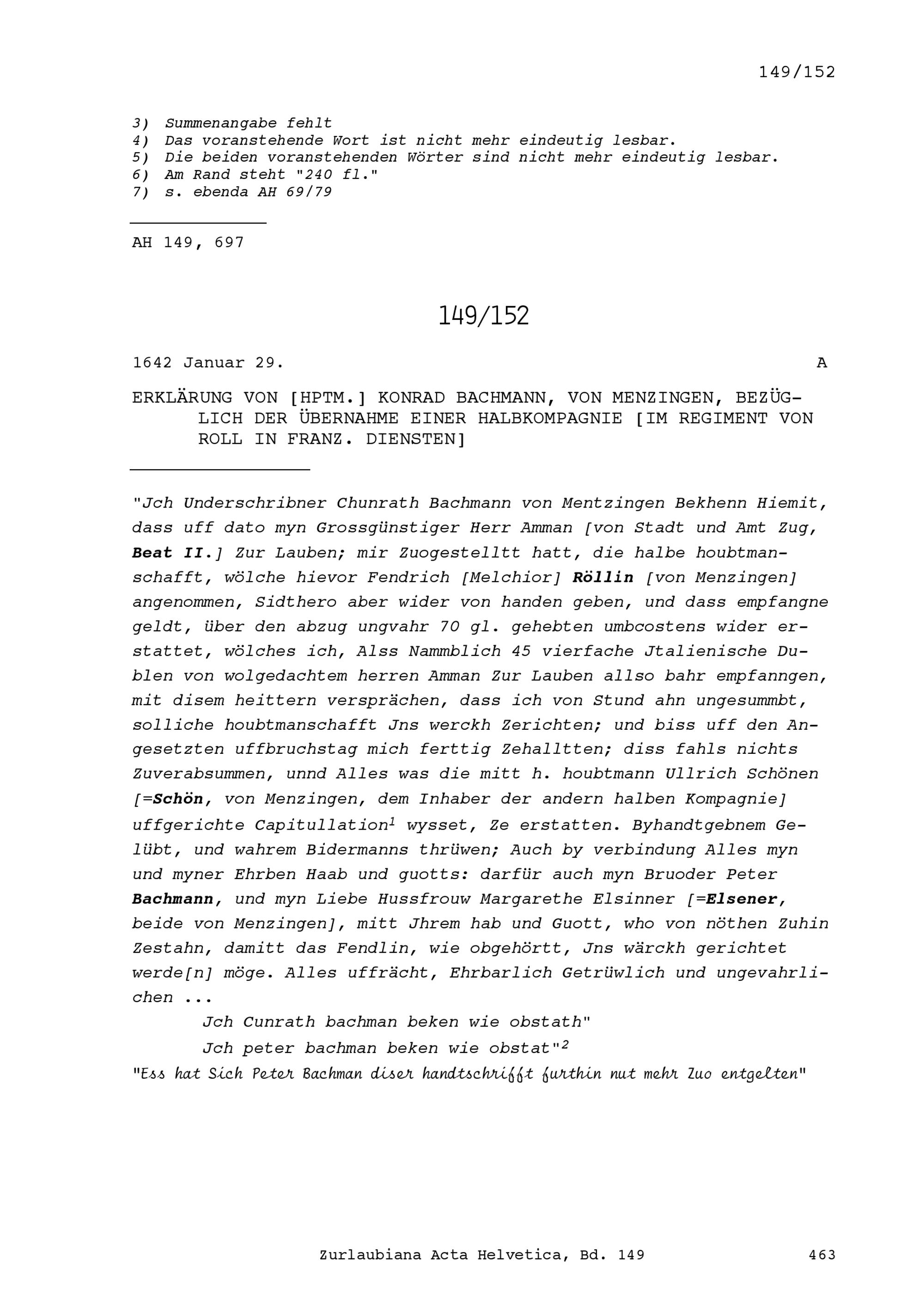 Erklärung von Konrad Bachmann, Hauptmann, von Menzingen, bezüglich der Übernahme...