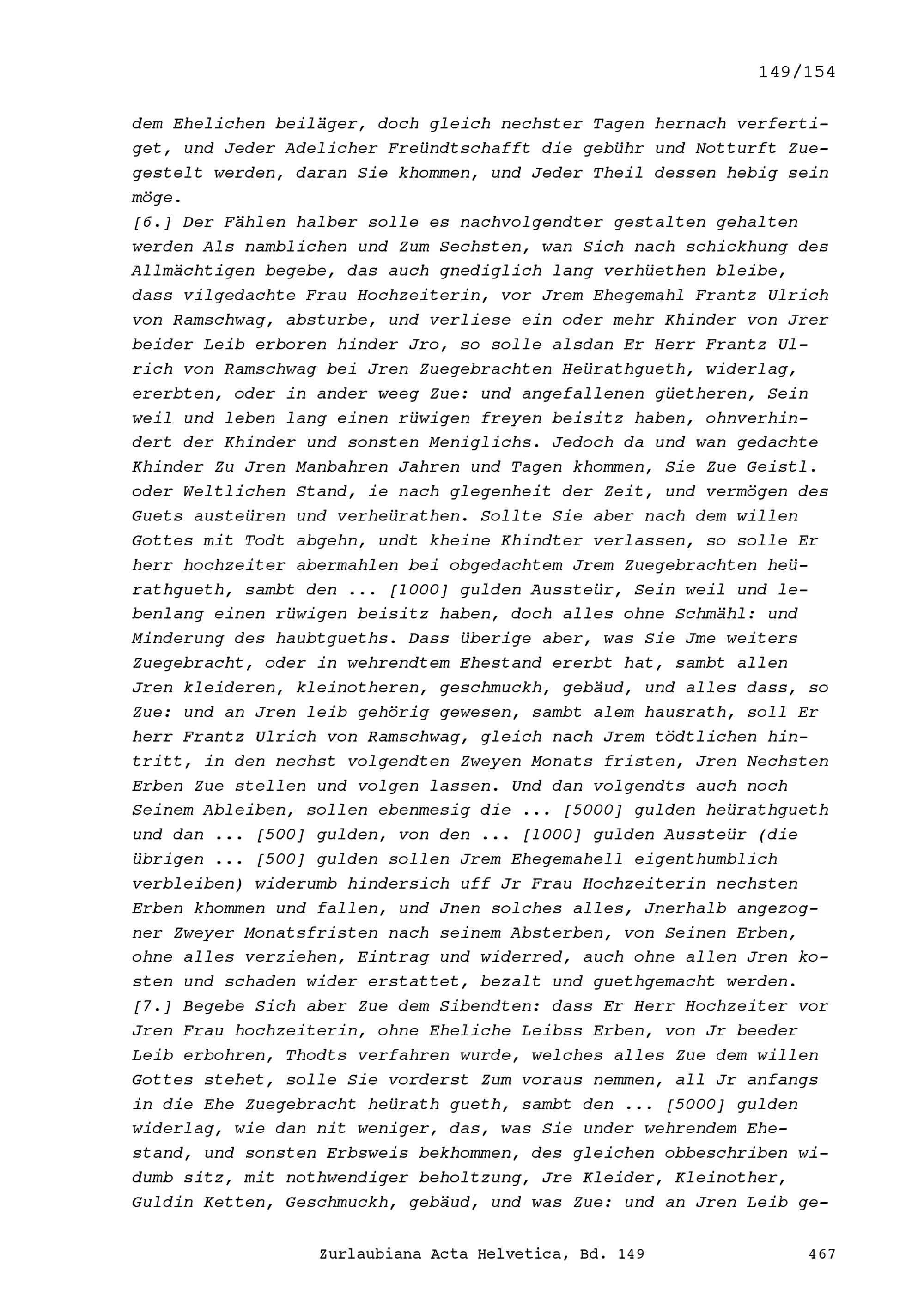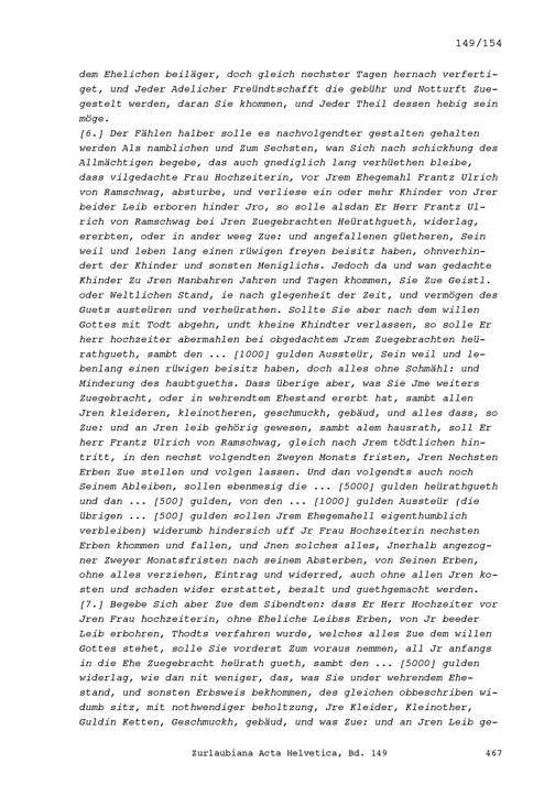 Ehevertrag zwischen Franz Ulrich, von Ramschwag, und Anna Judith von Ulm, zu Wellenberg