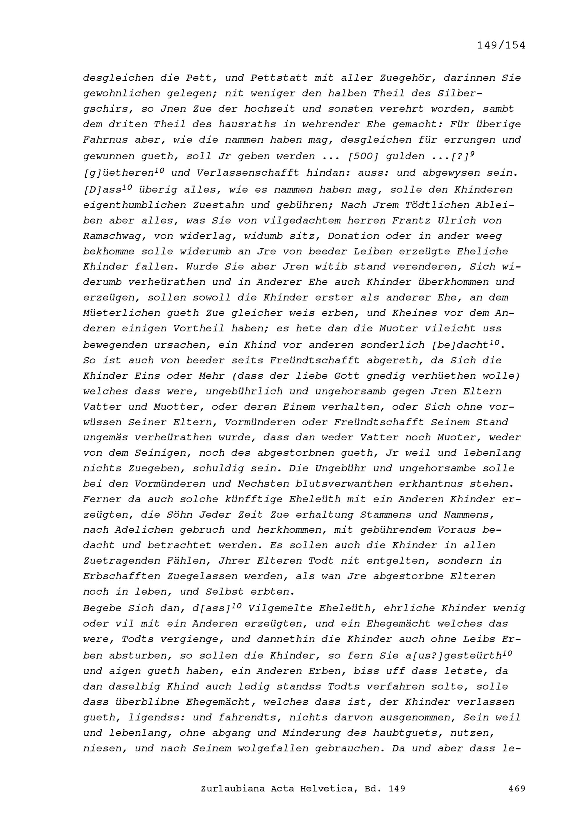Ehevertrag zwischen Franz Ulrich, von Ramschwag, und Anna Judith von Ulm, zu Wellenberg