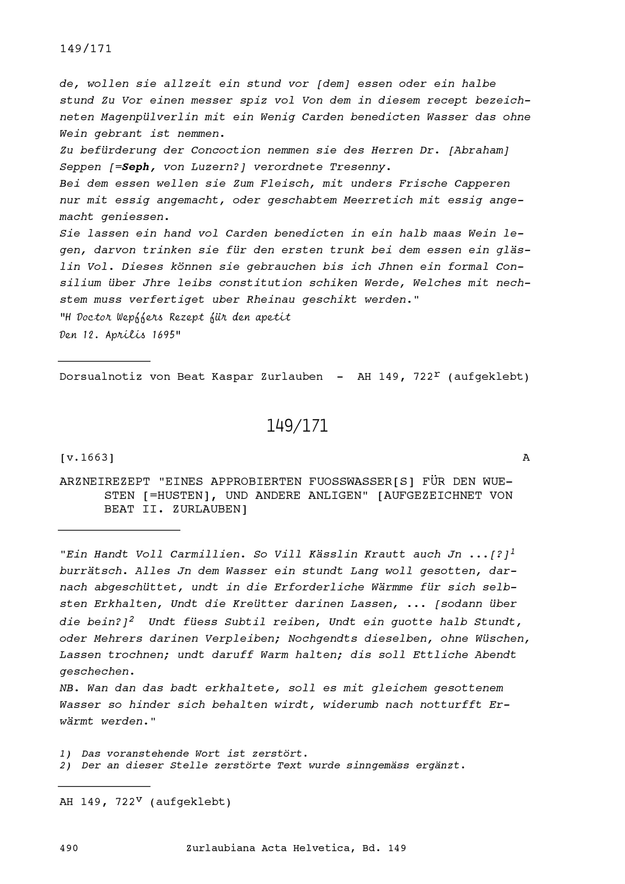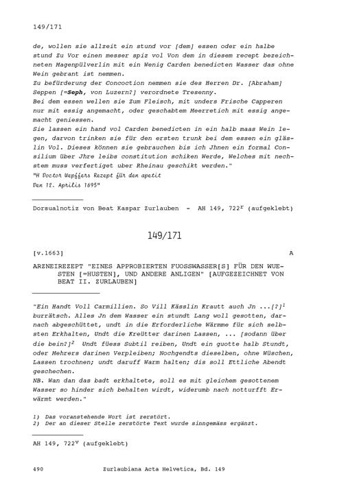 Acta Helvetica, Band 149