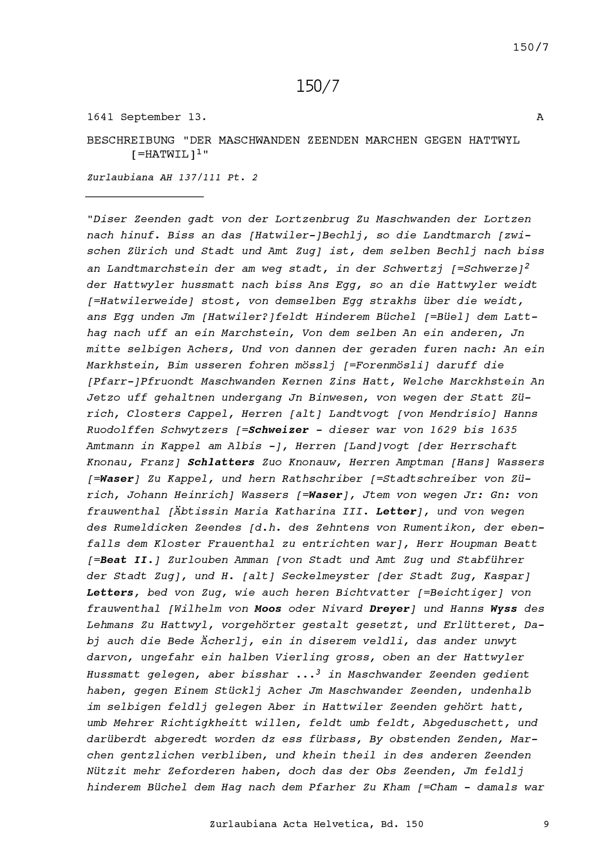 Beschreibung der Grenzen des Maschwanden Zehnten gegen Hattwil